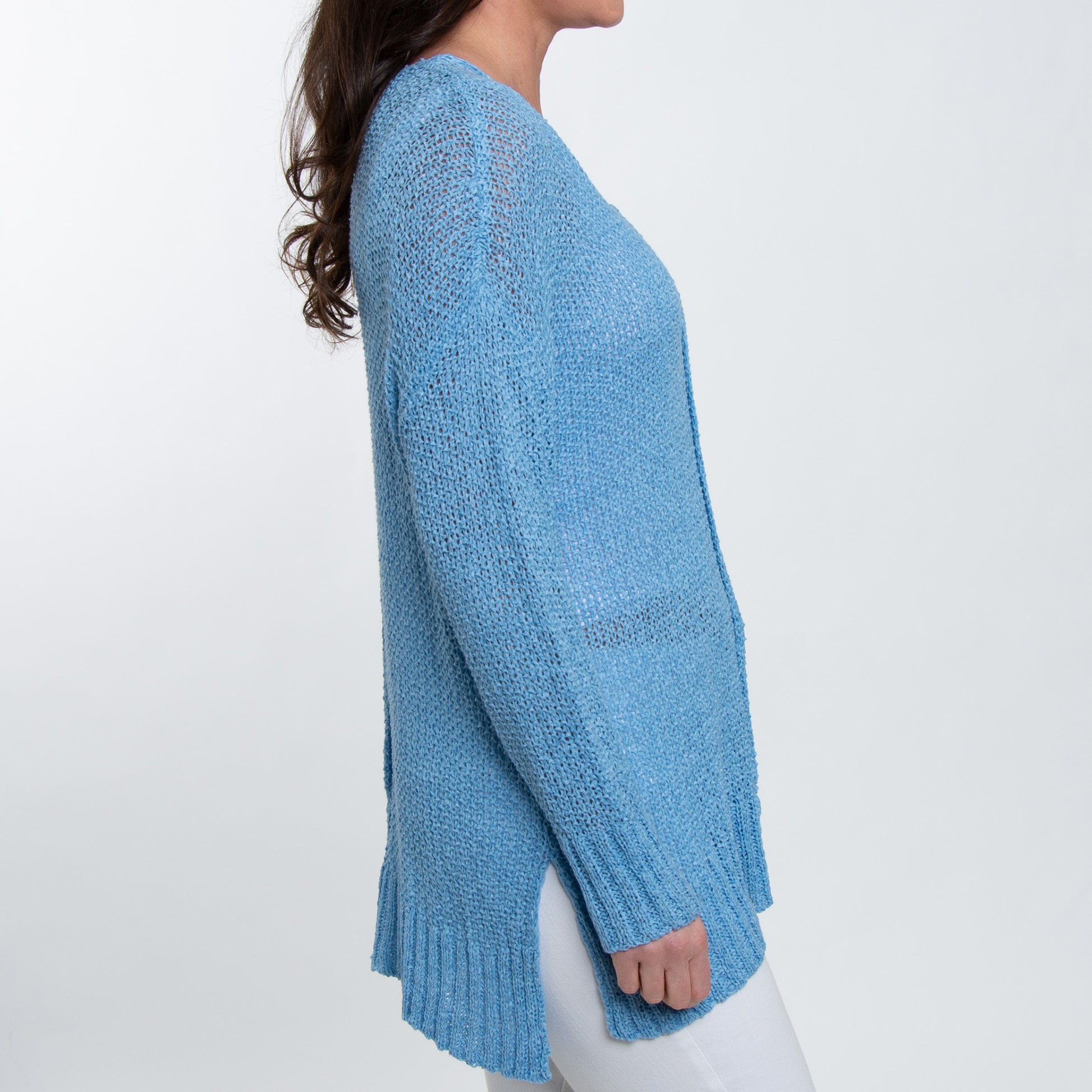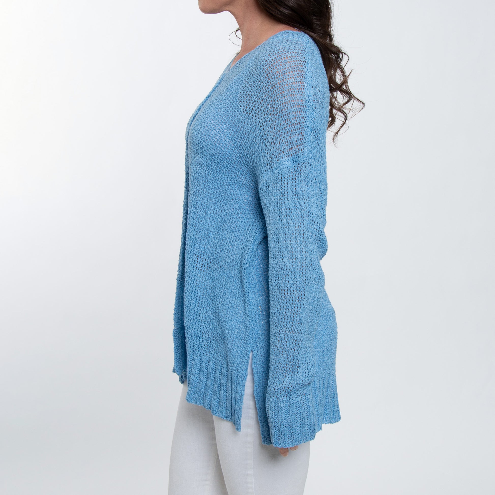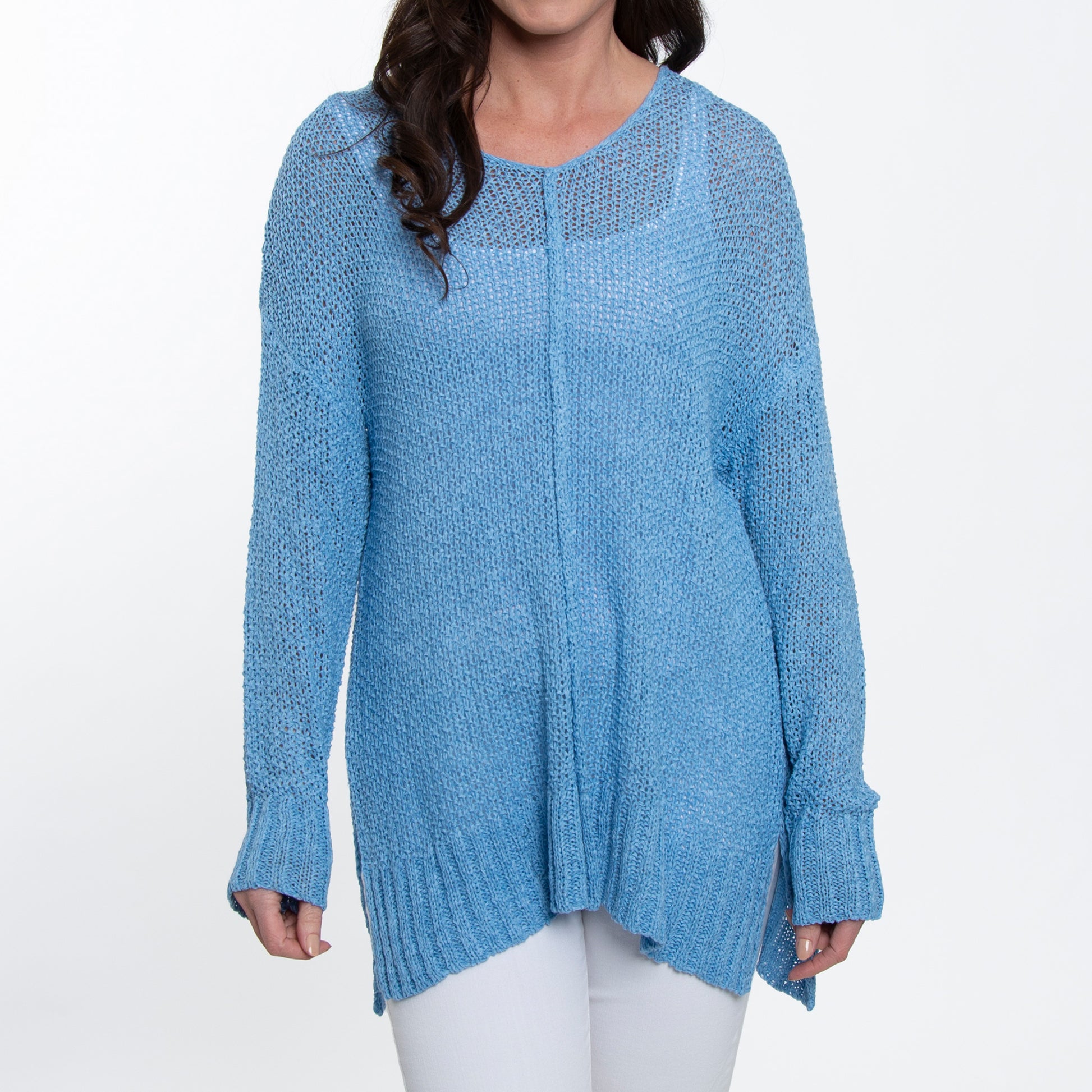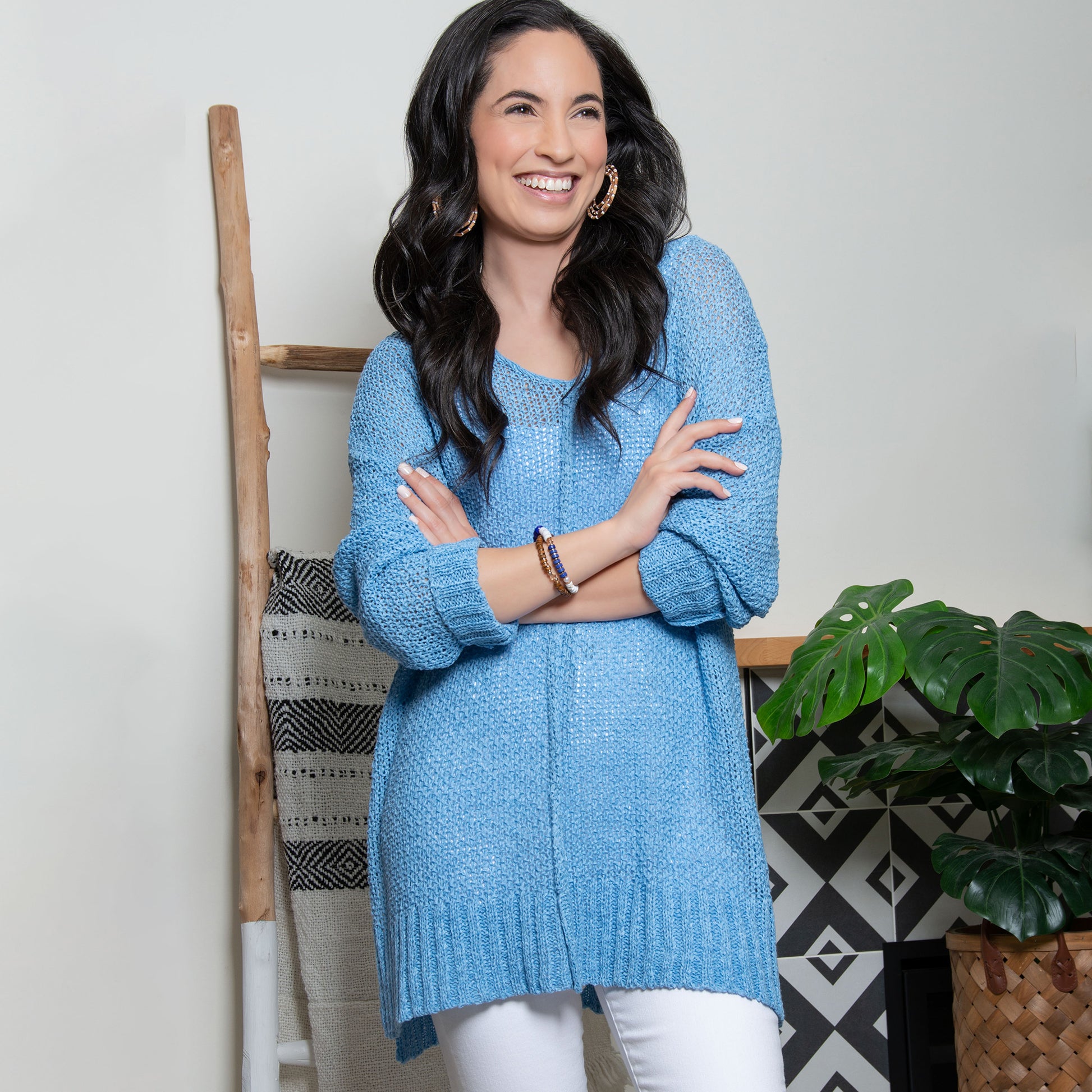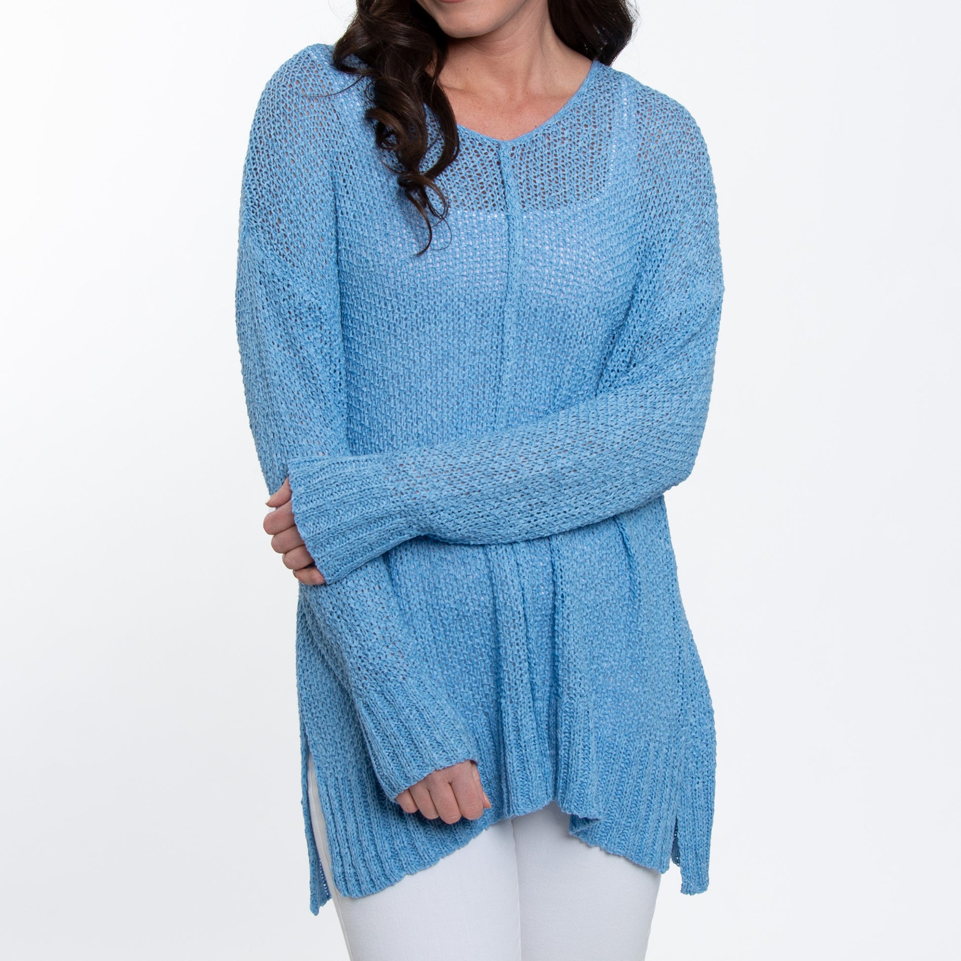 Add a bit of lightweight love to your wardrobe with the Ellery Crochet Dolman Sleeve Sweater. Featuring a relaxed fit in a soft powder blue, this lightweight crochet sweater makes for the perfect fall layer, or over a pair of shorts for any vacation!