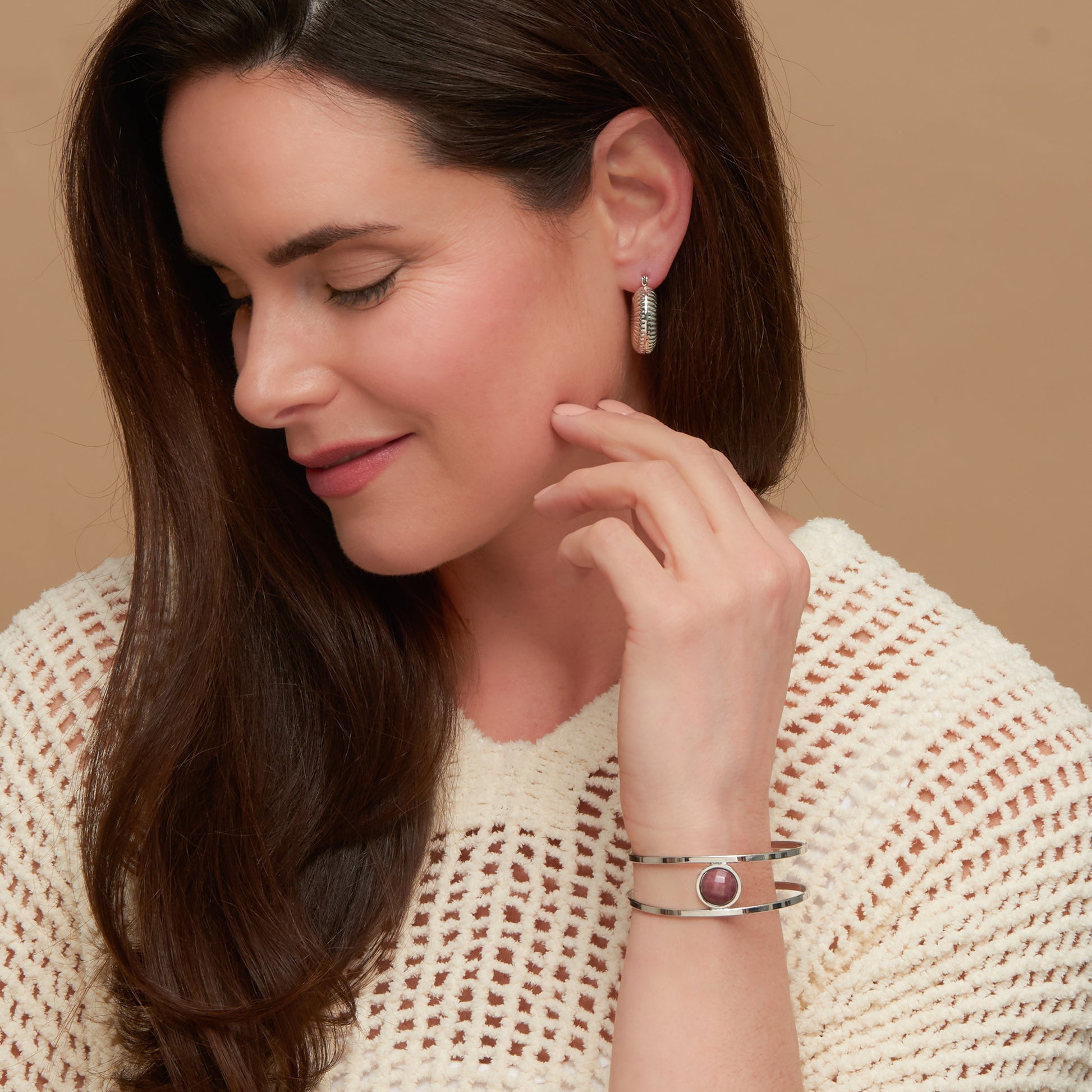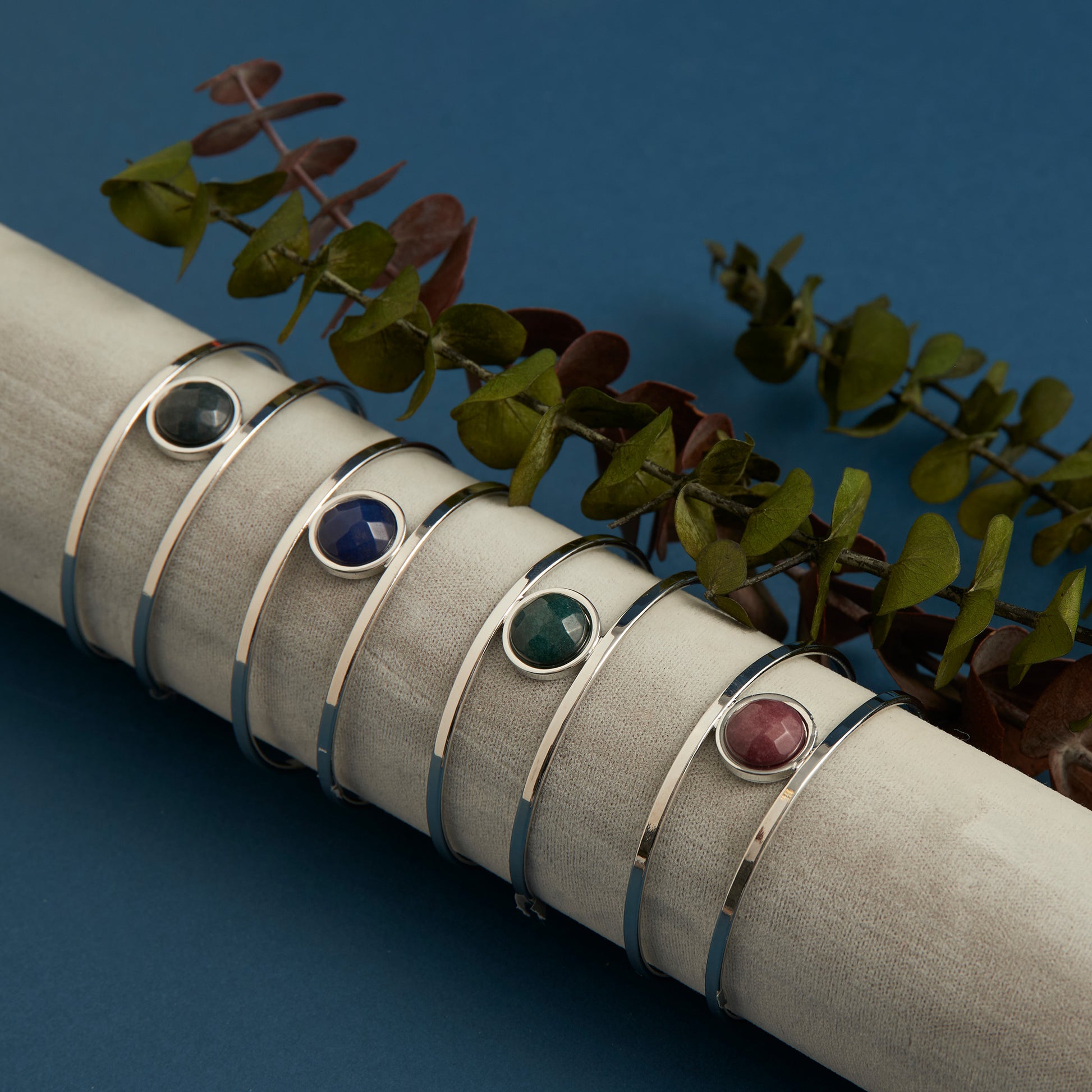 Faceted Gen Stone Sil Cuff Br