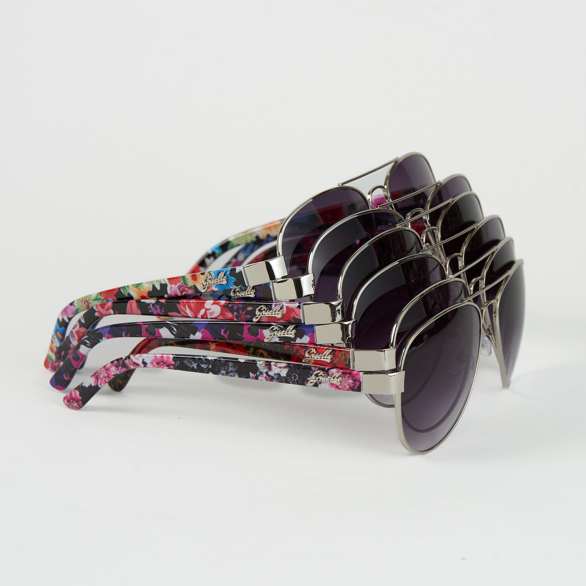 Stock up on everyday style with our floral print aviator sunglasses assortment featuring 6 pairs in a variety of best-selling colors. Each pair offers a trendy aviator frame silhouette with floral arm details, UV protection and modern flair—perfect for beach days, festivals, or daily wear.