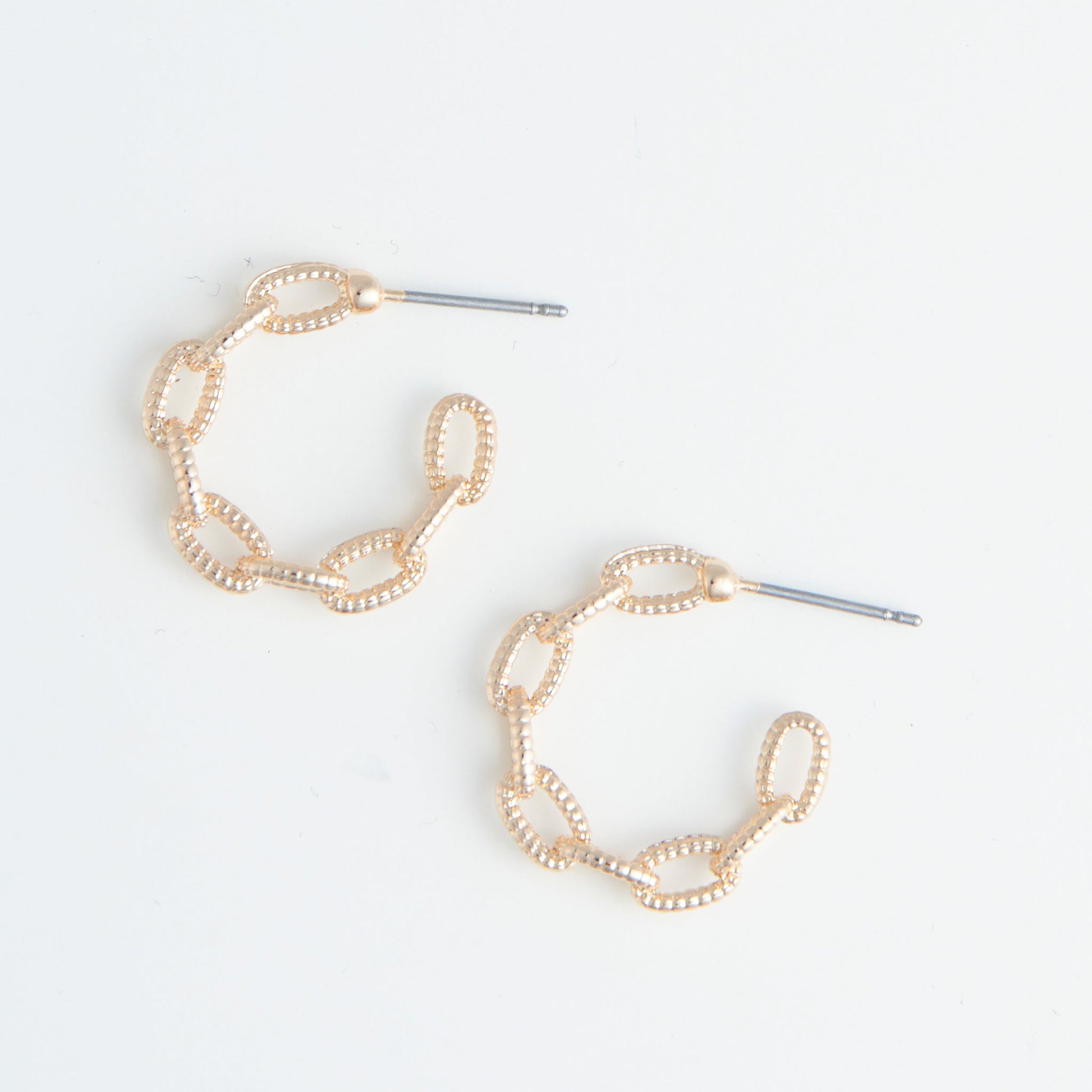 A modern take on a classic, the Gold Chain Link Hoop Earrings combine the on-trend gold chain look with the timeless hoop design. These cuties are sure to liven up any look. Hypoallergenic and perfect for sensitive ears.
