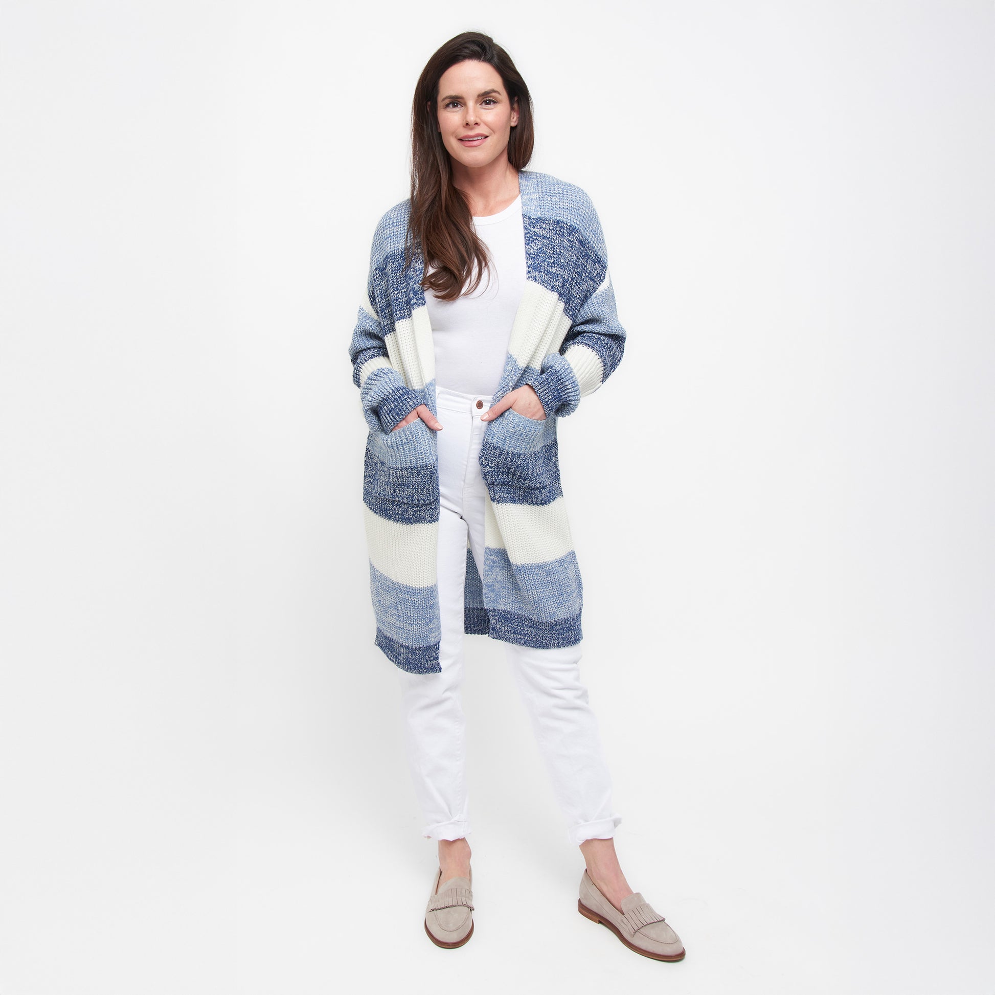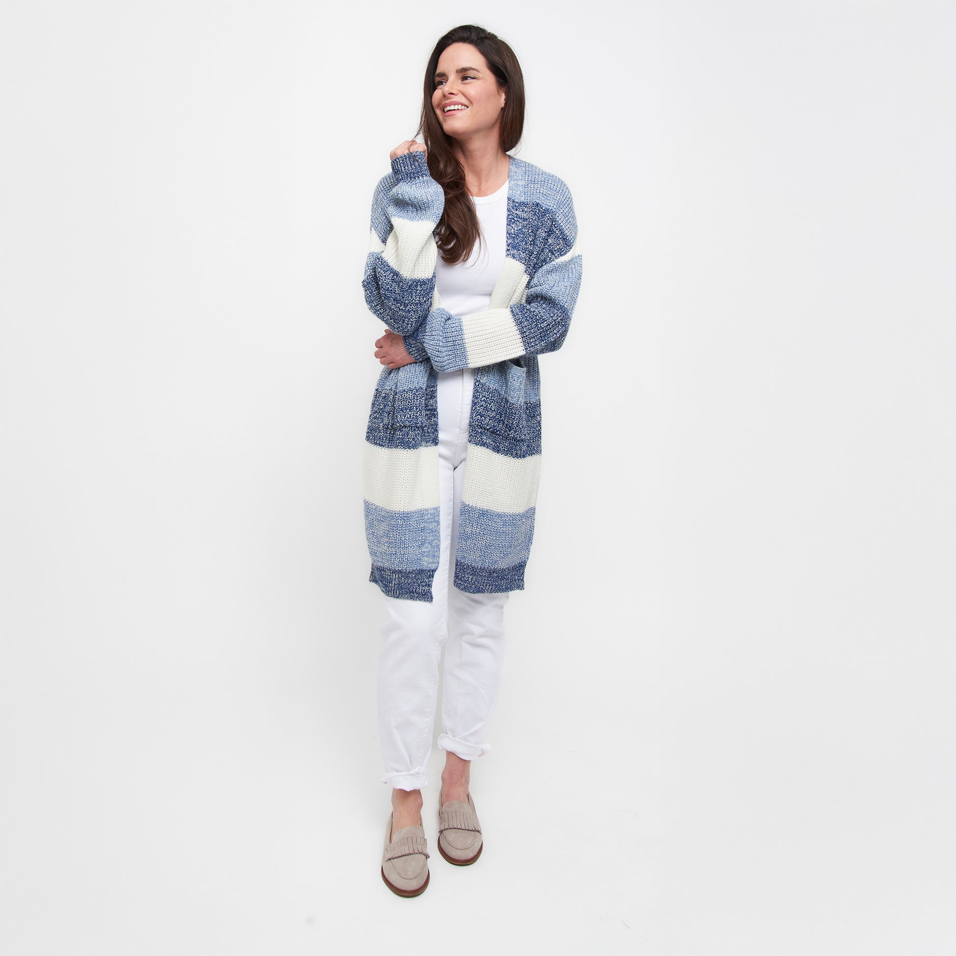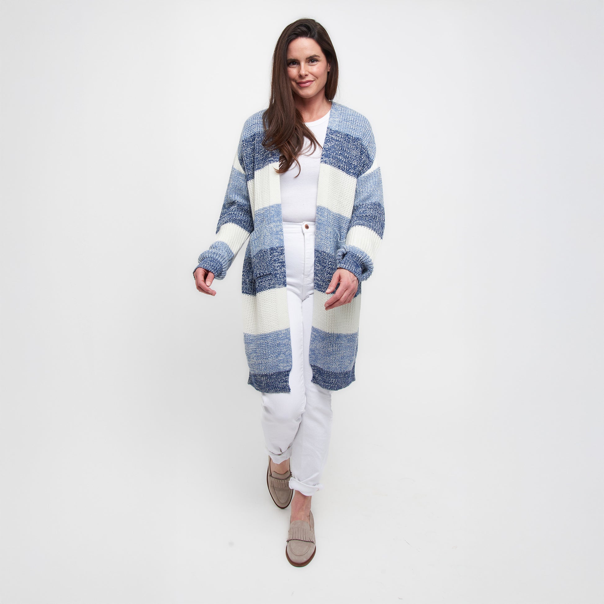 Stay cozy and stylish with the Greyson Color Block Cardigan. Featuring a super soft and cozy heathered knit with an on trend color block stripe and patch pockets, this cardigan is an absolute cool weather staple.