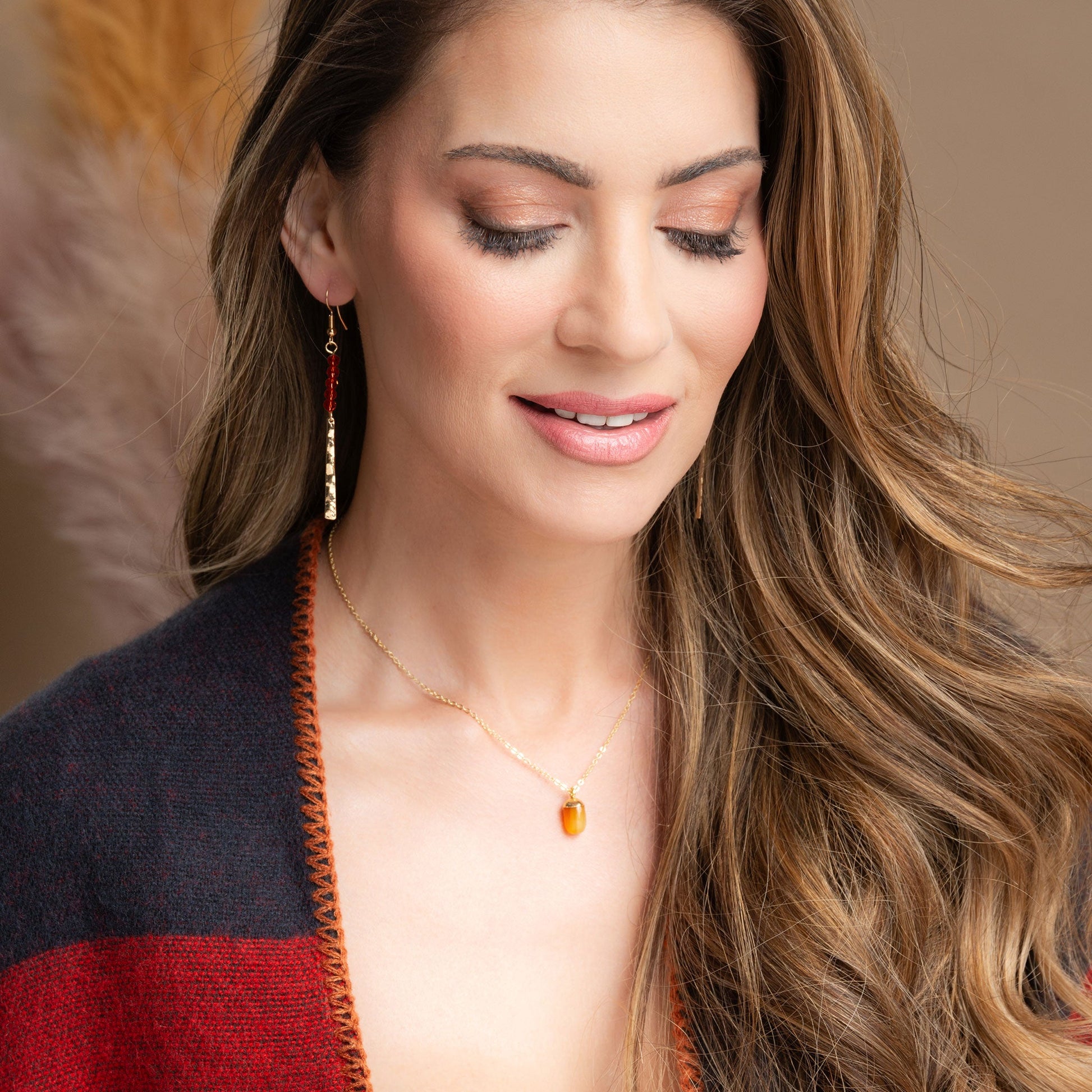 Perfect for every day! The Harlowe 18k Gold Genuine Carnelian Pendant Necklace features 18k gold plating with a dainty genuine Carnelian stone. Stylish and so easy to layer, this necklace goes with everything.