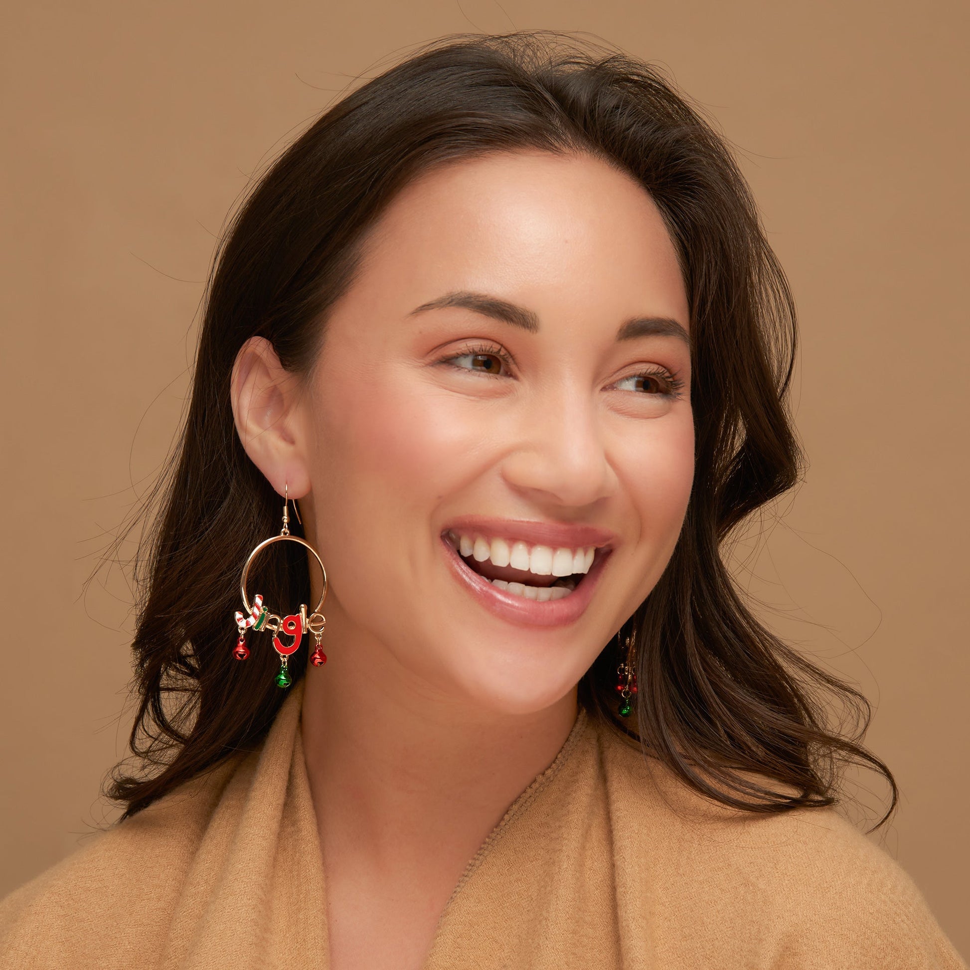 Stay festive and fun this holiday season with the Holiday Jingle Hoop Earrings. Featuring a classic hoop design with the word 'Jingle' spelled out in cute Christmas-themed lettering and sweet jingle bell detailing, these hypoallergenic earrings add cheery flair to any look.