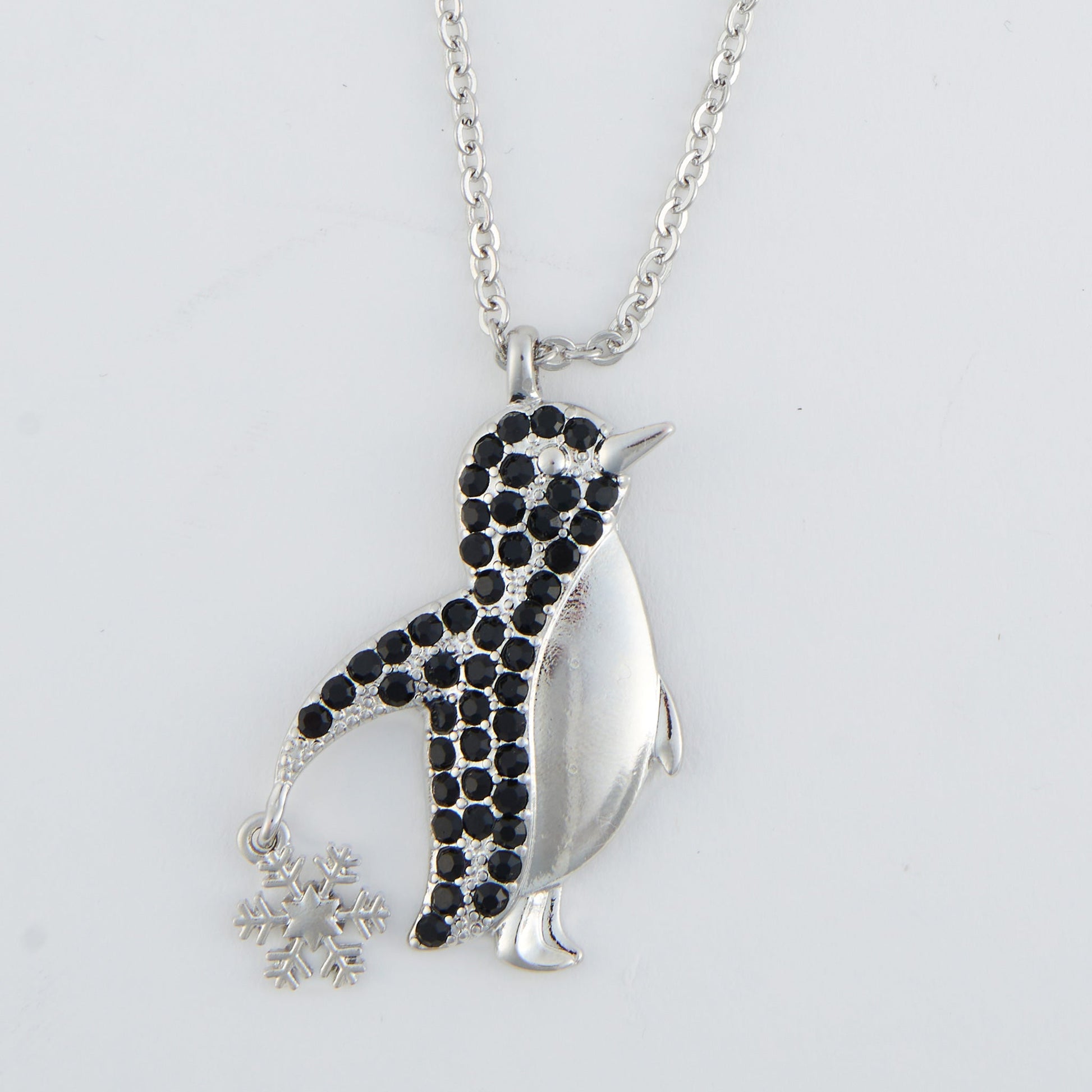 Stay festive and fun this holiday season with the Holiday Penguin Pendant Necklace. Featuring an adorable penguin pendant with cute snowflake charm detailing and studded with gemstones, this statement necklace adds cheery flair to any look.