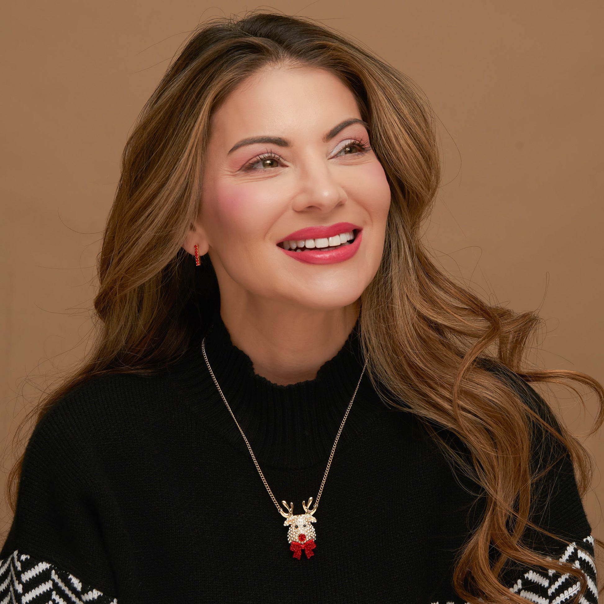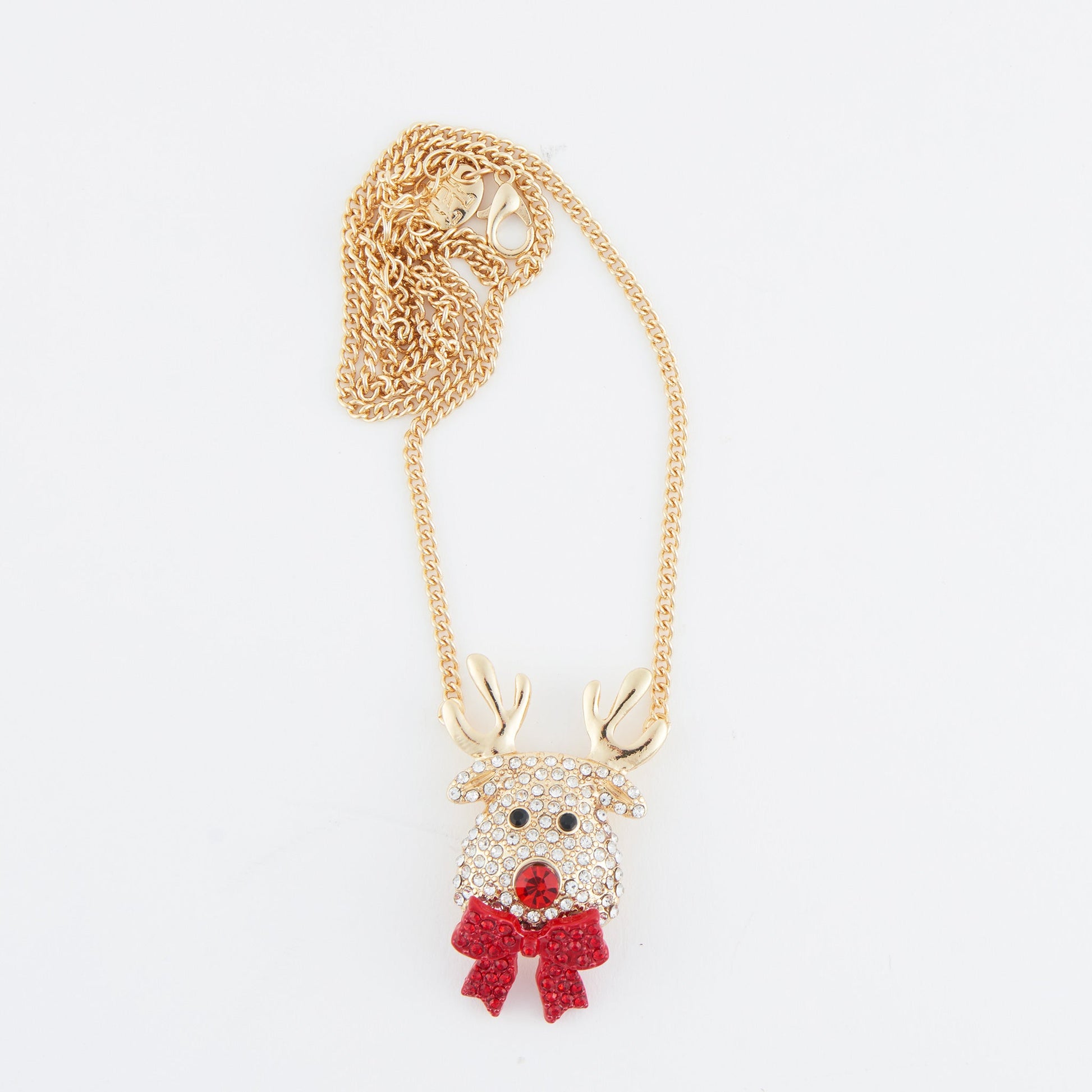 Stay festive and fun this holiday season with the Holiday Reindeer Pendant Necklace. Featuring an adorable reindeer head pendant with cute red nose and bow and studded with gemstones, this statement necklace adds cheery flair to any look.