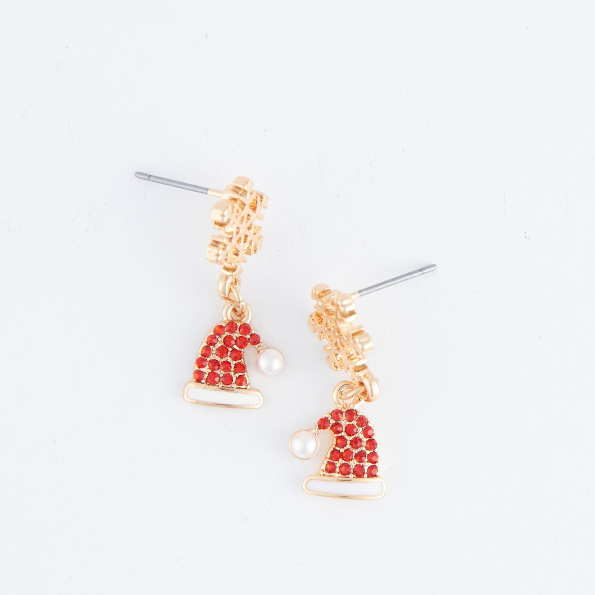 Stay festive and fun this holiday season with the Holiday Santa Hat Earrings. Featuring cute snowflake design with gem-encrusted Santa hat pendants, these cuties add cheery flair to any look.