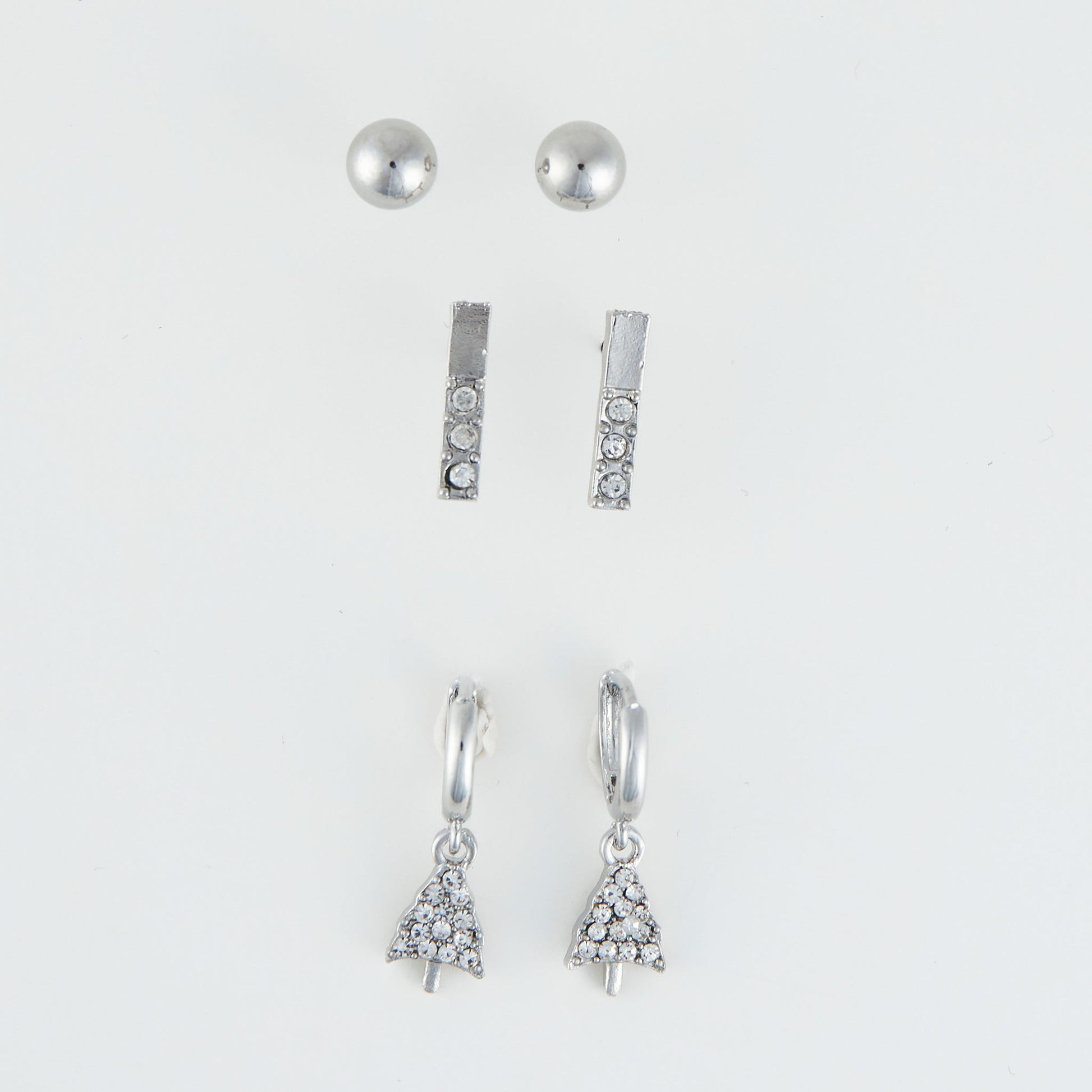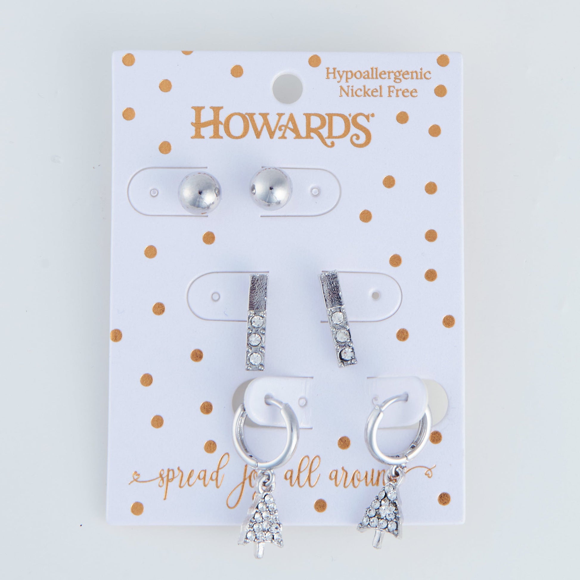 Stay festive and fun this holiday season with the Holiday Silver Christmas Tree Earring Trio. Featuring three unique pairs of earrings, each shimmering in silver and one with adorable Christmas tree charms, this set makes for the perfect gift and adds cheery flair to any look.