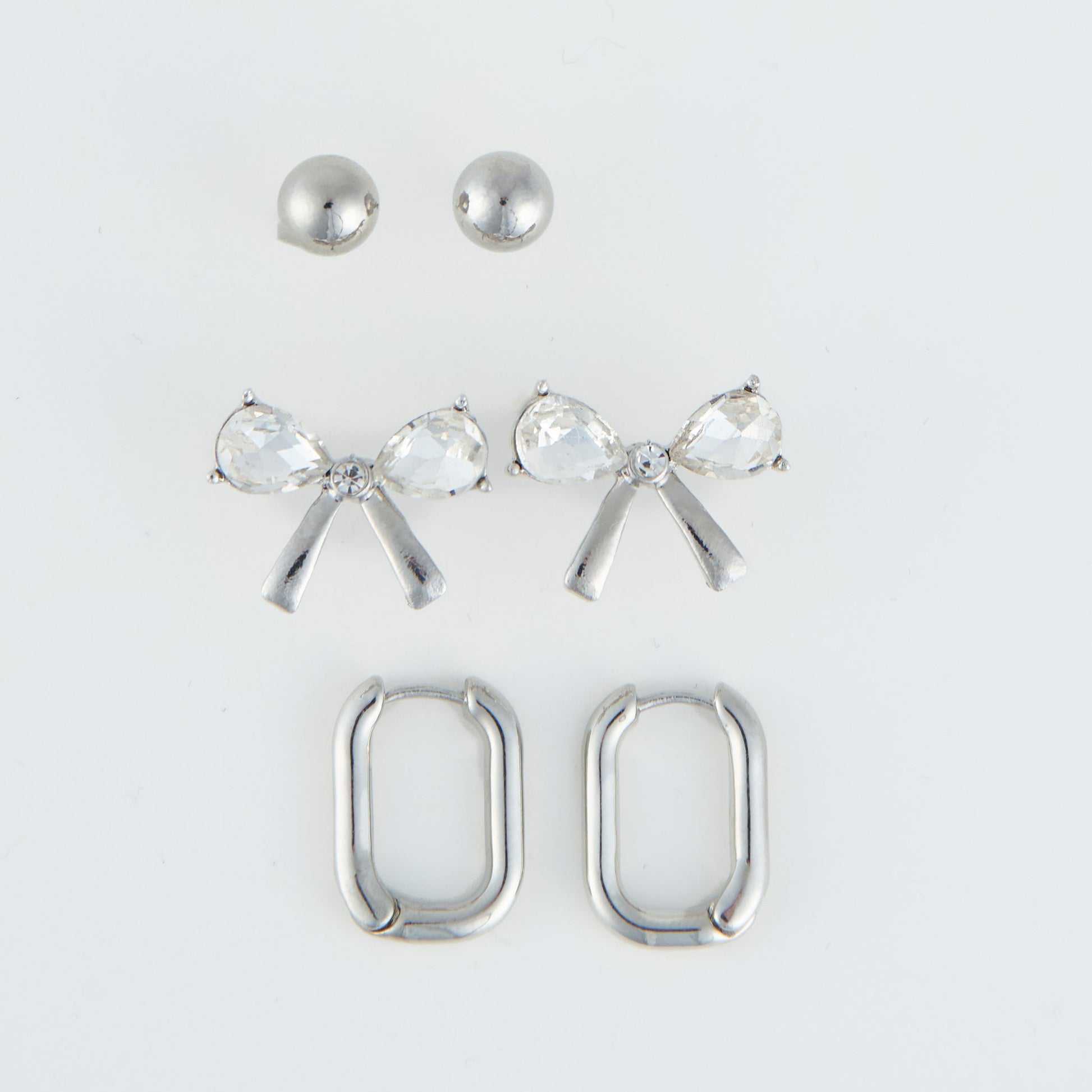 Stay festive and fun this holiday season with the Holiday Silver Rhinestone Bow Earring Trio. Featuring three unique pairs of silver earrings in simple and chic designs, this set adds cheery flair to any look.