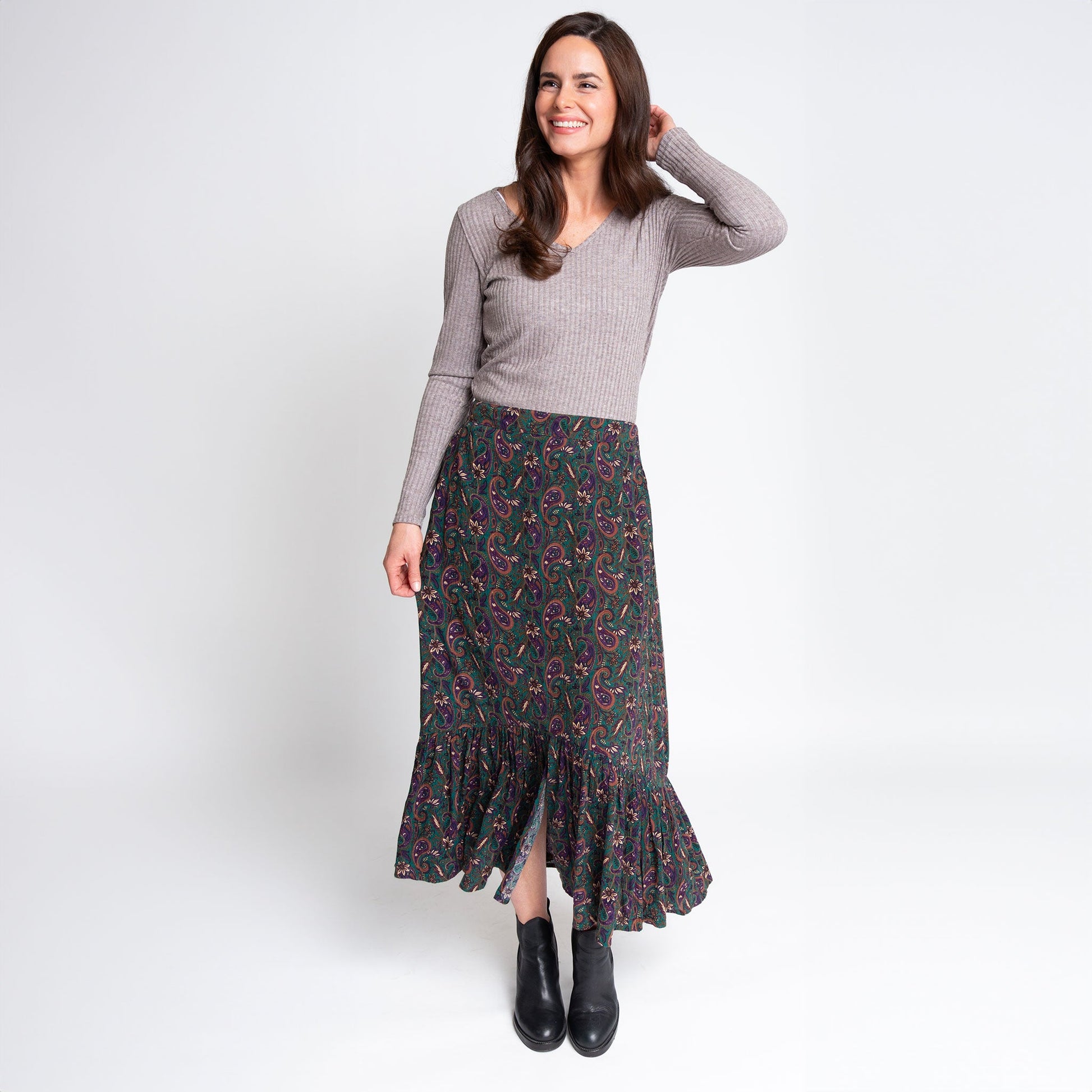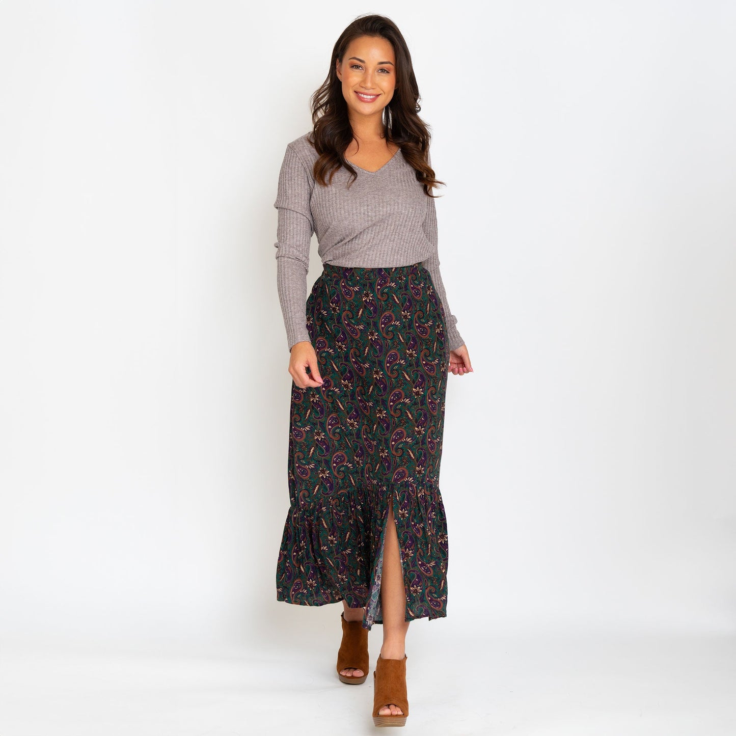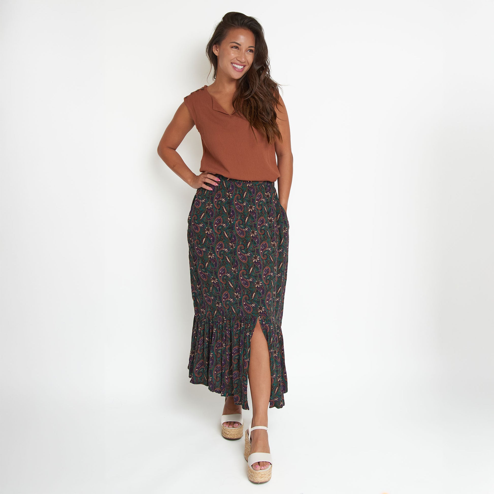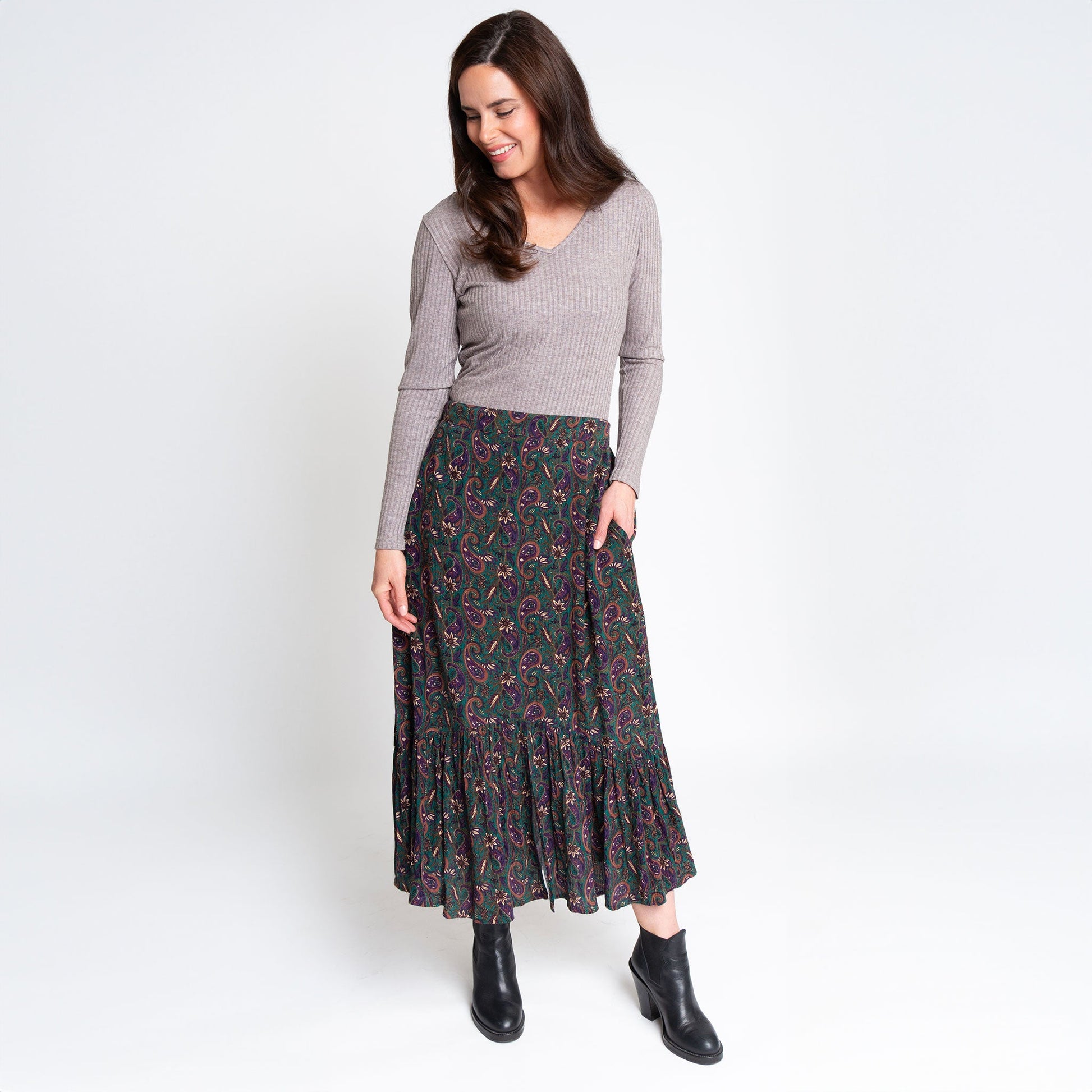 Pretty in Paisley! Featuring an attention-grabbing asymmetric design and flattering maxi length, the Joie Tiered Skirt is easy to style and easy to love.