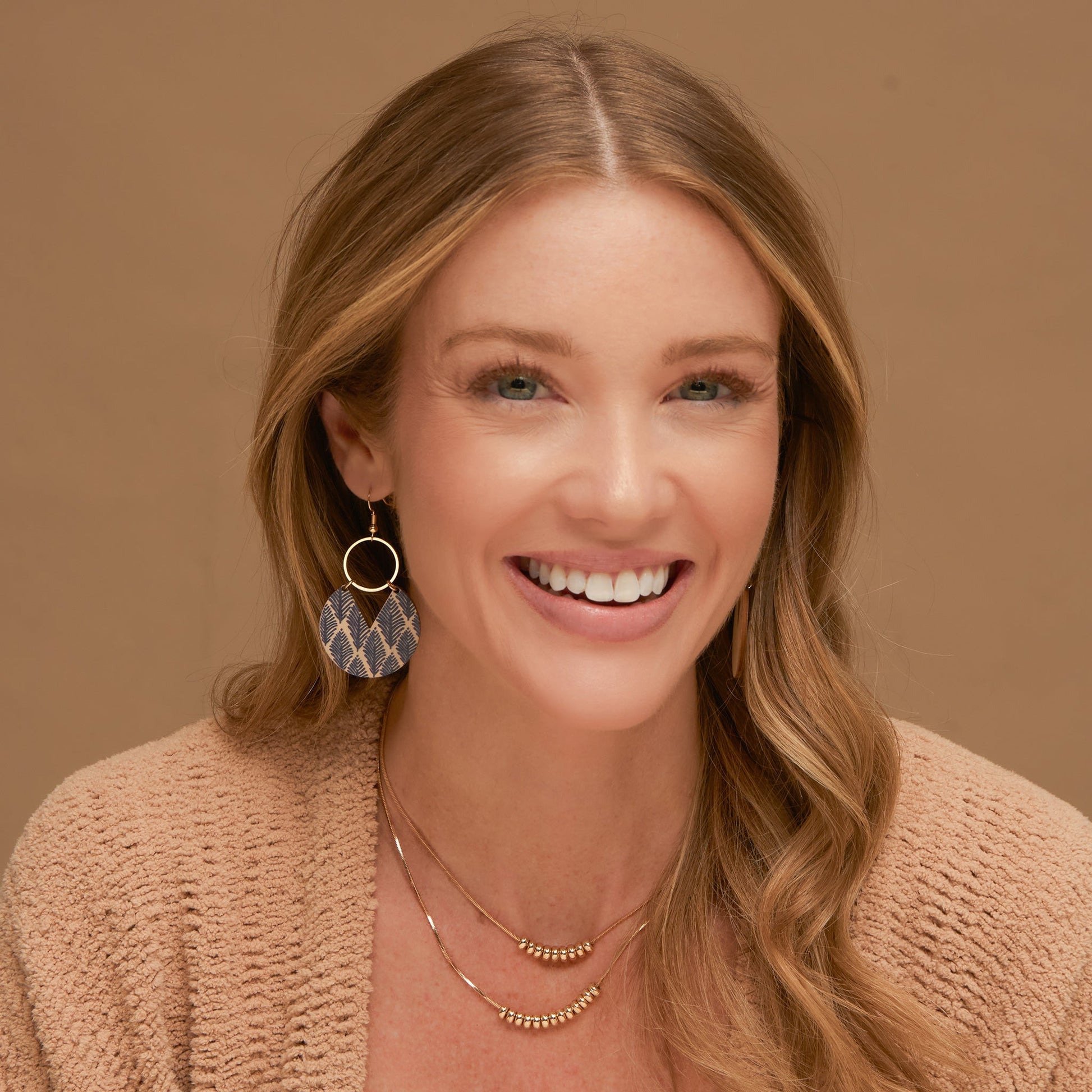Add a bit of artistic flair to your look with the Jolie Wooden Leaf Print Earrings. Featuring circular wooden charms with adorable leaf pattern printed onto them and hanging off golden hoops, these lightweight earrings definitely make a statement.