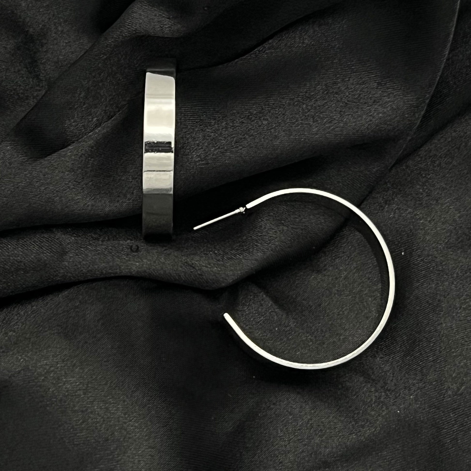A delicate take on a classic. These large earrings feature a trendy flat hoop design, adding a touch of interest to any outfit and making them the perfect pair for everyday wear. Hoops have a 35mm diameter