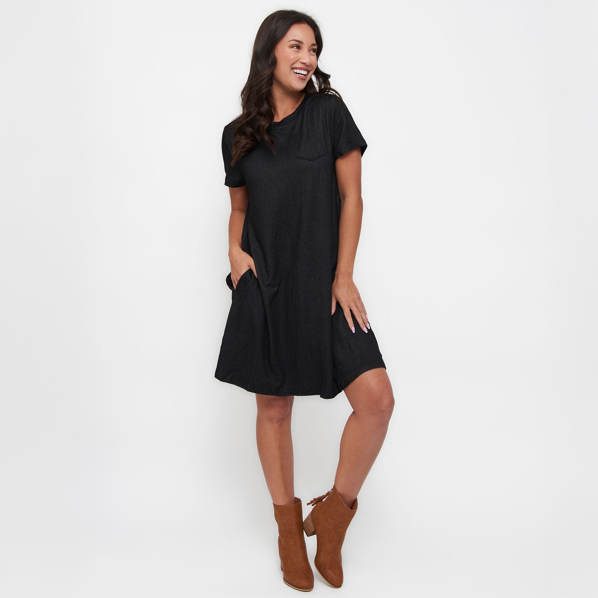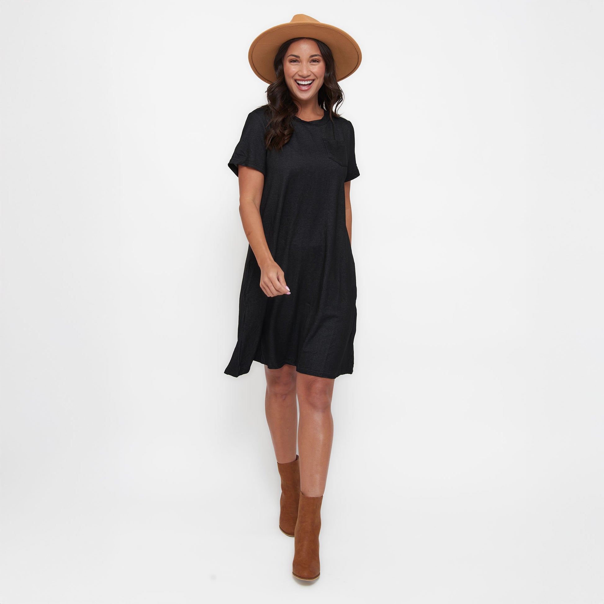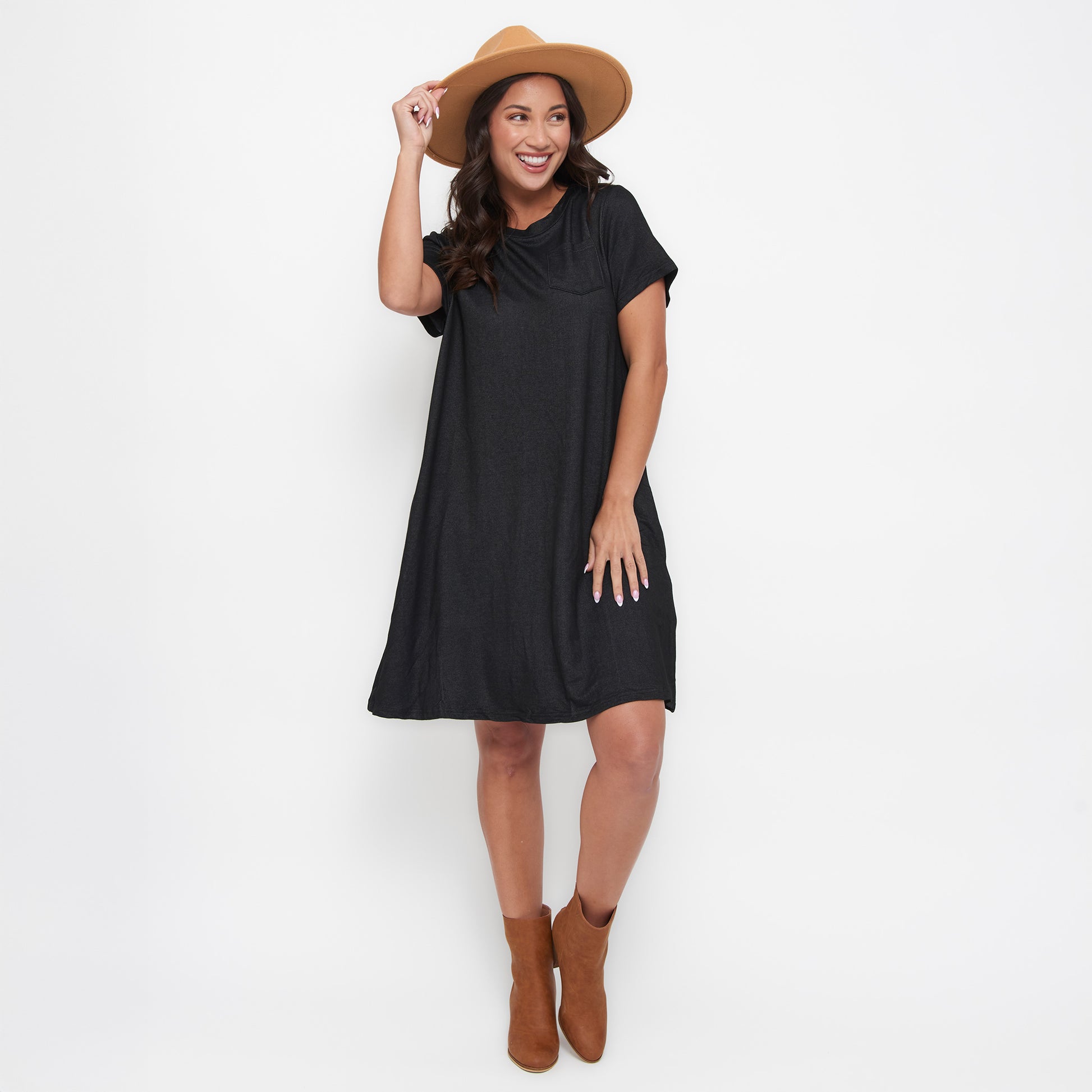 So cute and comfy! The Linzey Tunic Dress features a gorgeous relaxed fit in our cozy and stylish comfort stretch denim fabric, complete in a beautiful inky black with cute breast pocket. You won't want to take it off!