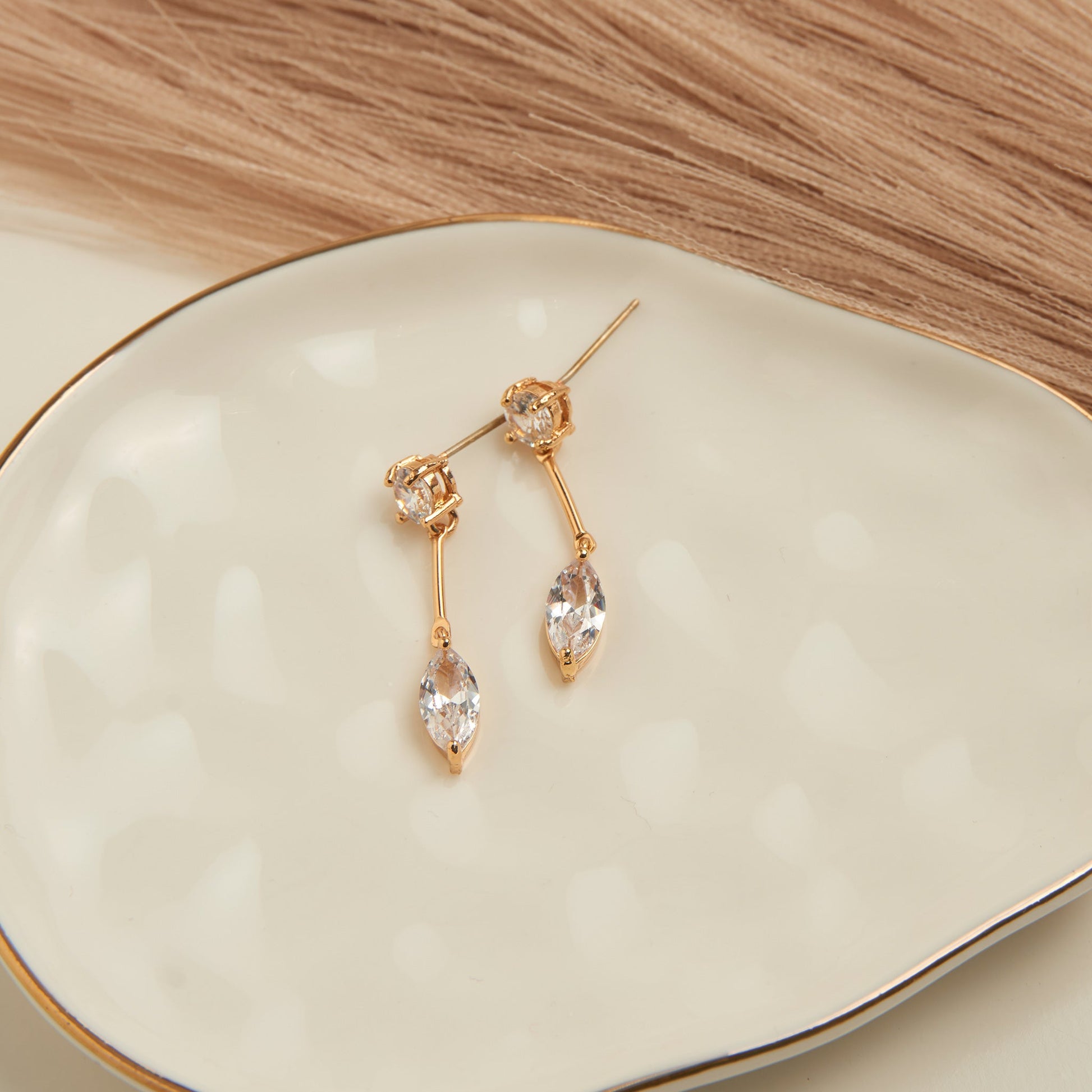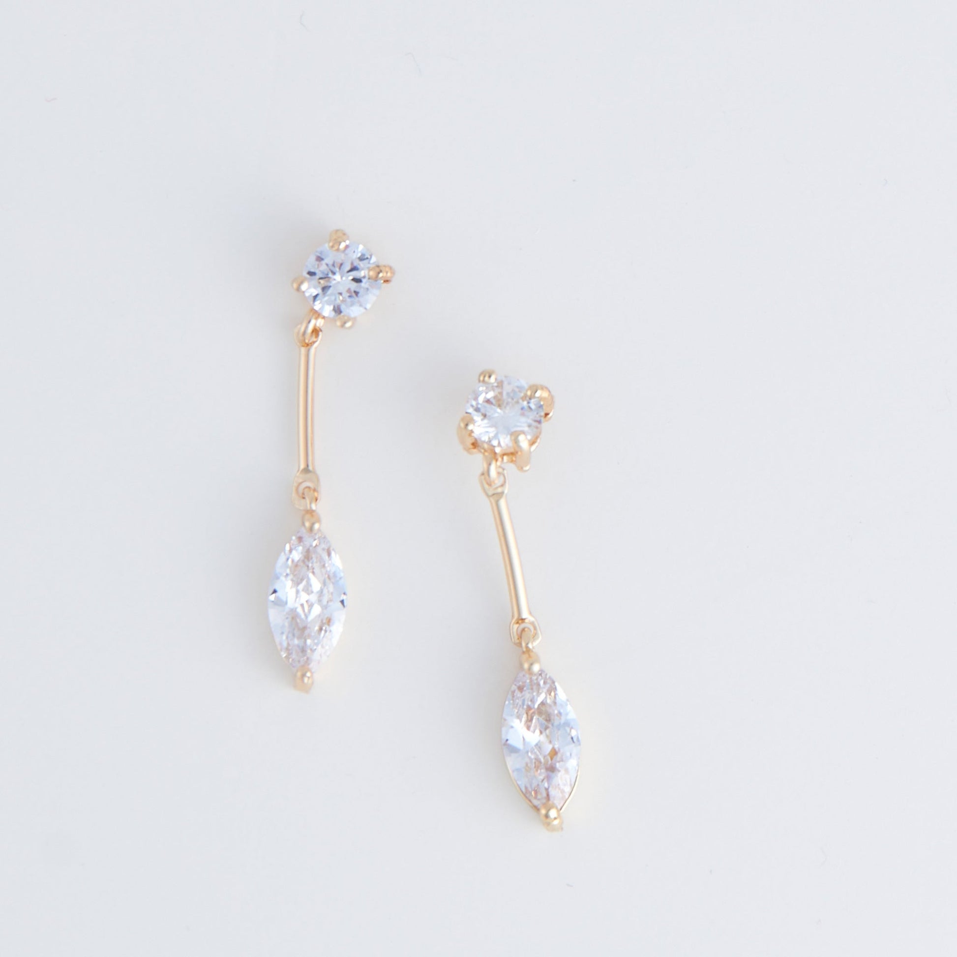 Add a touch of modern elegance to any outfit with the Long Post Cubic Zirconia Dazzler Earrings. Featuring brilliant Cubic Zirconia hanging from delicate gold bars, these beauties elevate any look.