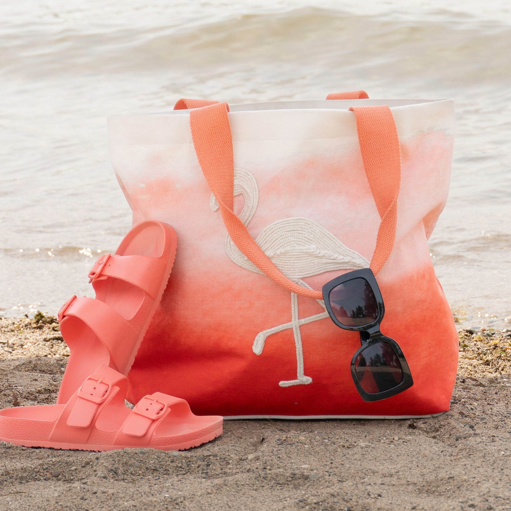 You'll be beach ready with the Maui Water Resistant Tote! Water resistant so your belongings won't get wet, this tote bag features a vibrant coral color with a gorgeous flamingo hand embroidered across the front and inner pockets inside for extra organization, this water resistant bag will be your new summertime staple.