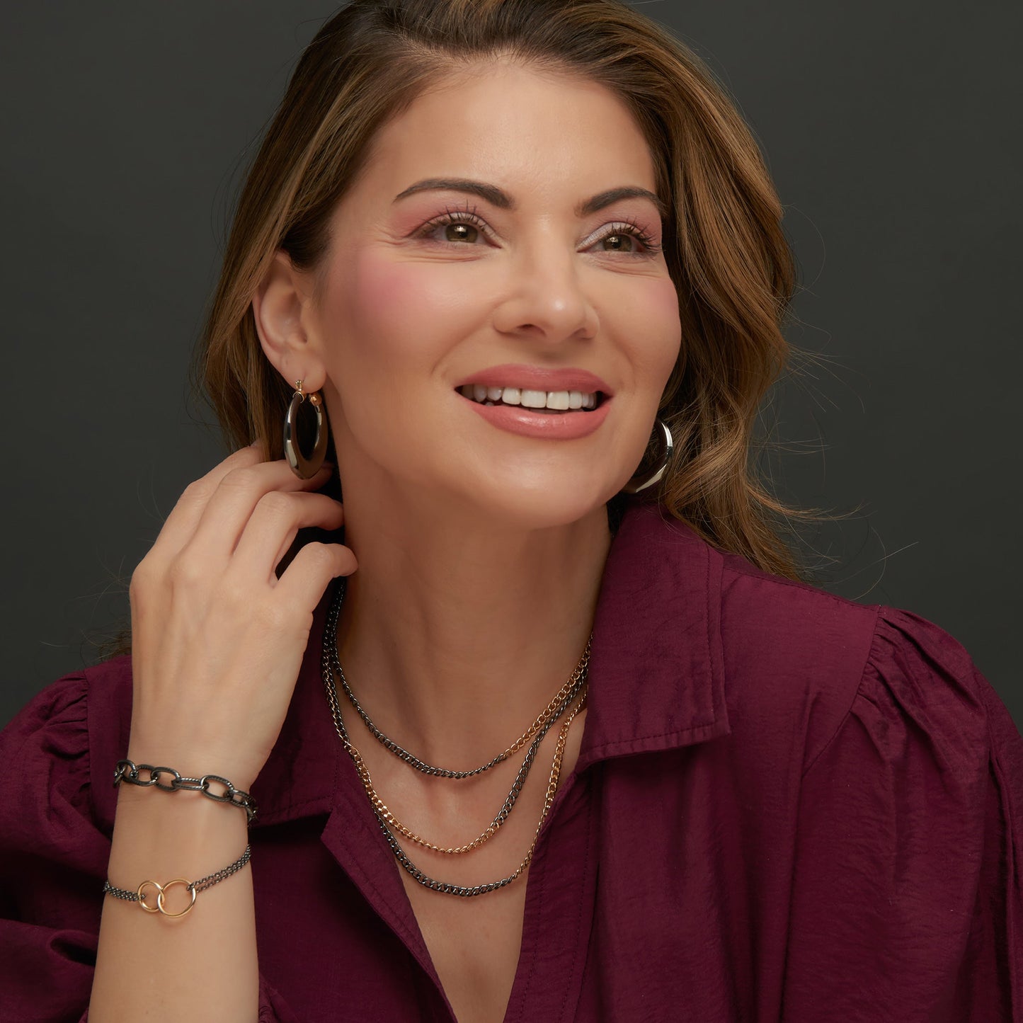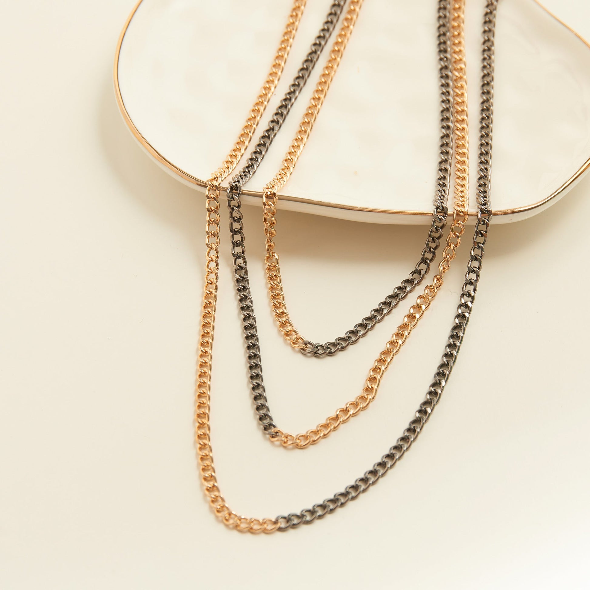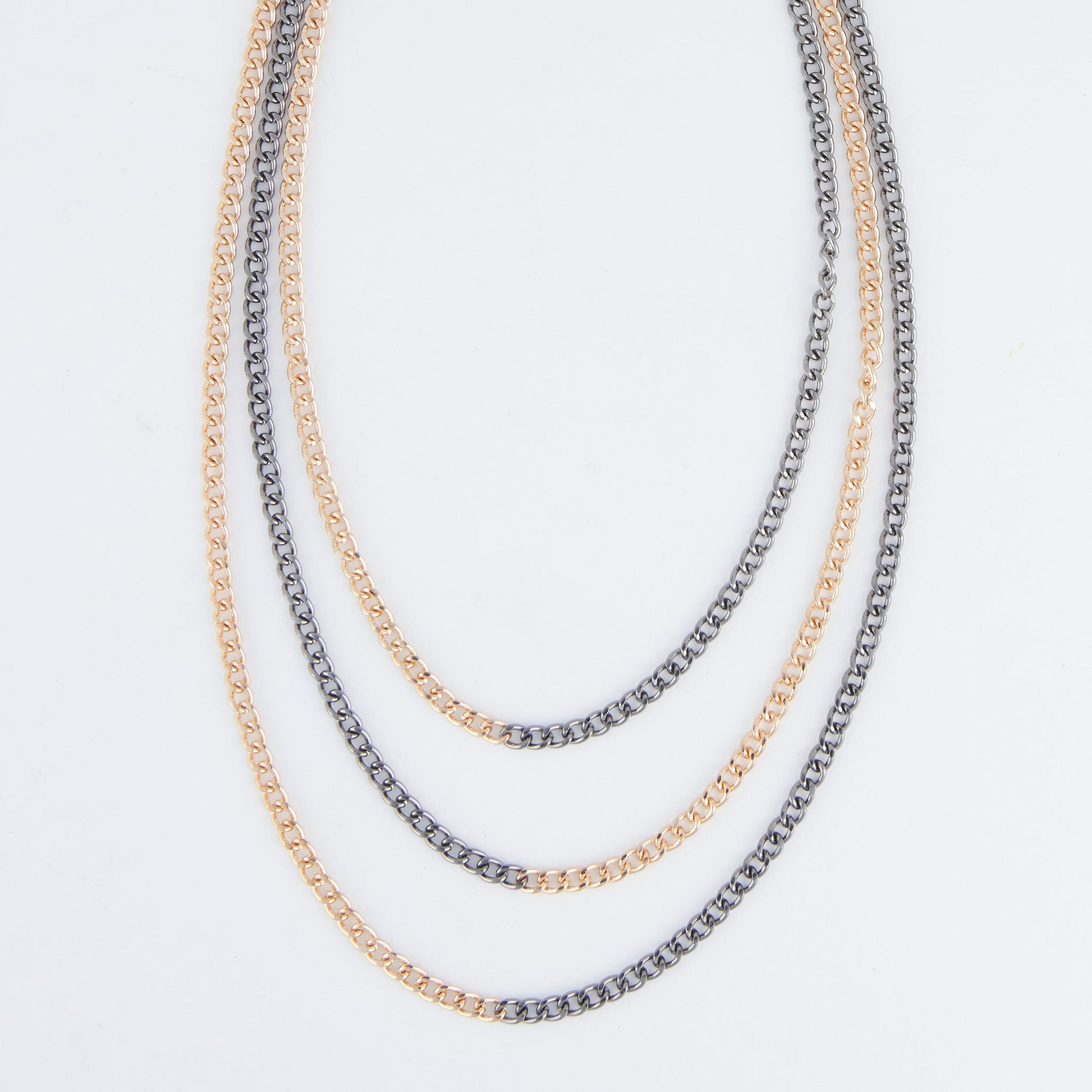 Create an effortlessly styled look with the Melia Two Tone Layered Necklace. Featuring three strands of two-tone chain, this on-trend necklace is the perfect finishing touch.
