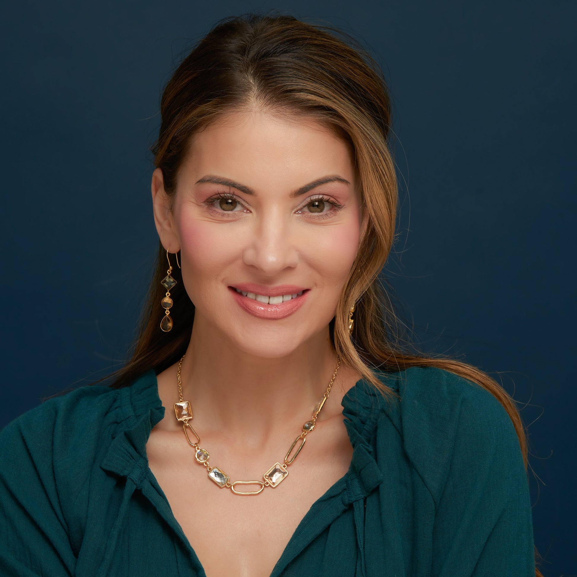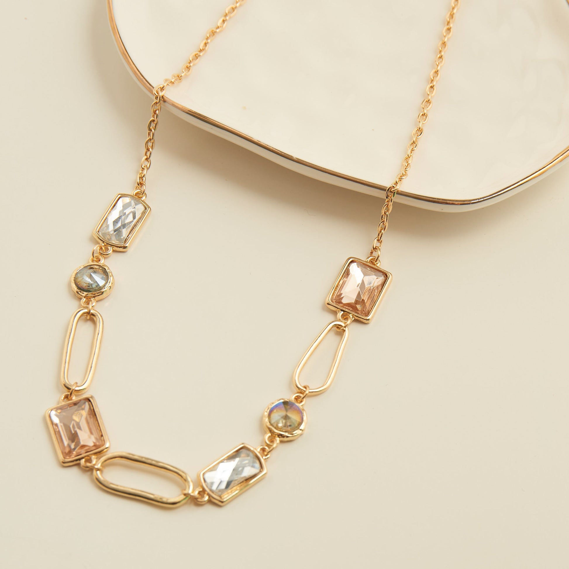 Add some sparkle to your look with the Miko Linked Shape Necklace. Featuring a dainty gold chain with a gorgeous variety of linked gemstone shapes, this statement necklace is perfect for your next special occasion.