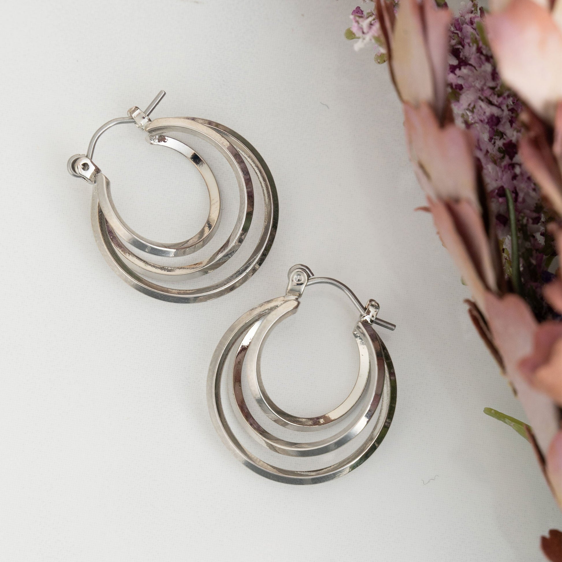 An elevated classic, the Small Multi Hoop Earrings feature a timeless, multiple hoop design in elegant silver. Their easy to wear pin catch enclosure only adds to their charm. Easy to style, these cuties are perfect for every day wear.