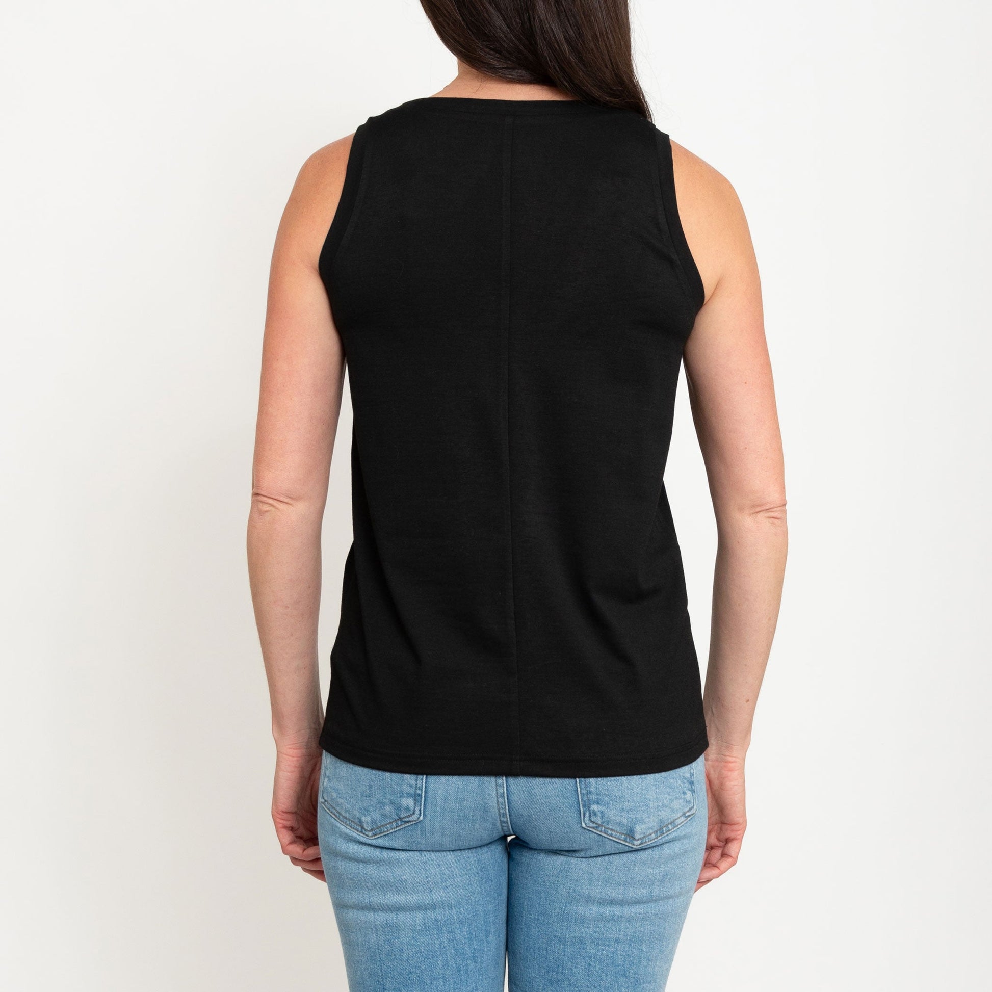 The Myla V-Neck Tank features a striking black hue with cute notch v-neck. Lightweight and easy to pair with anything in your closet, this top is an absolute essential.
