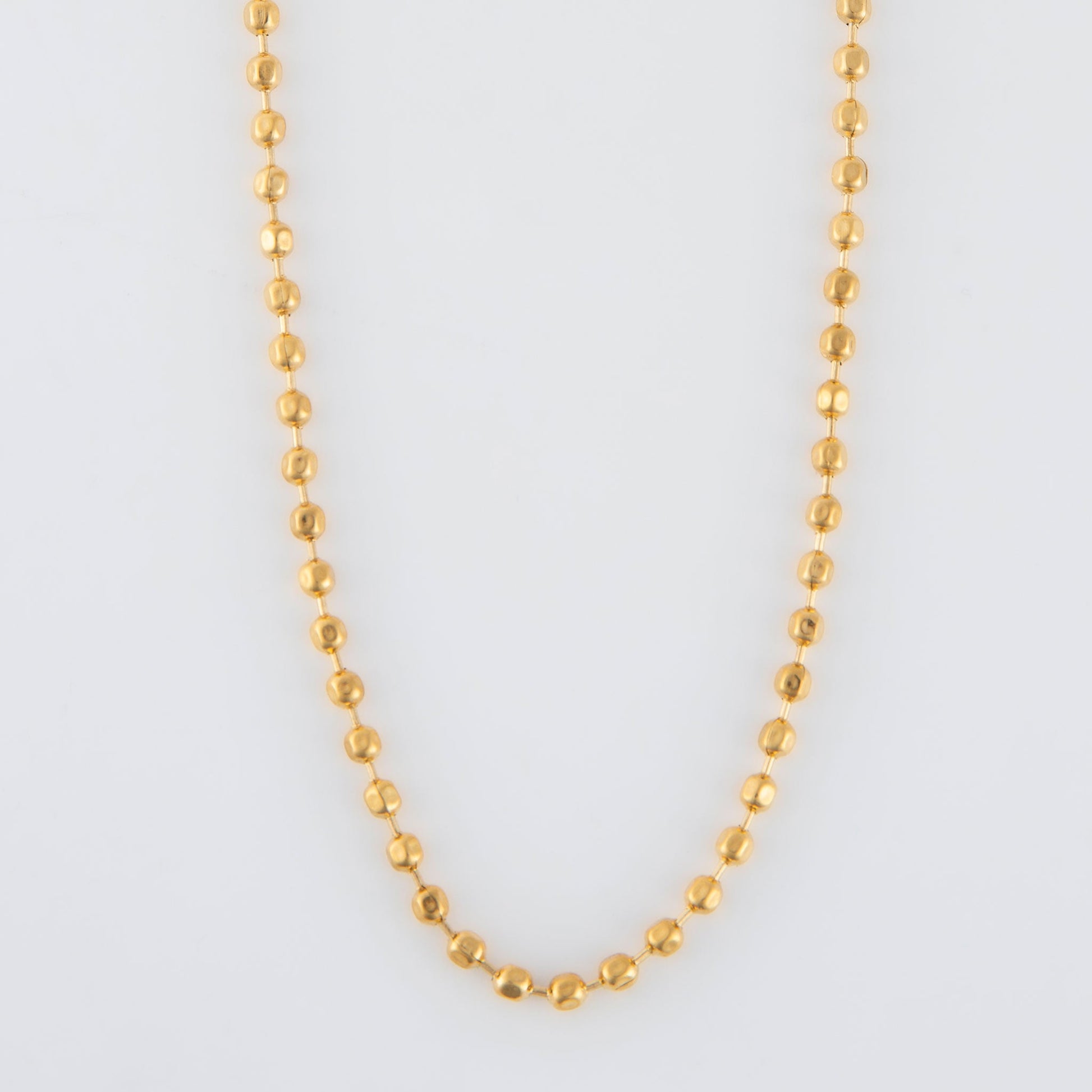 A modern take on a classic, the Narelle Waterproof Ball Chain Necklace offers a singular delicate ball chain in a classic gold. Designed to create an effortlessly chic and minimalist look, this waterproof necklace is the perfect finishing touch. Waterproof , 18K gold plated and made with a specialized PVD technique to withstand the rigors of life, from swimming and showering to sweating through your most intense workouts, all without ever losing its shine.