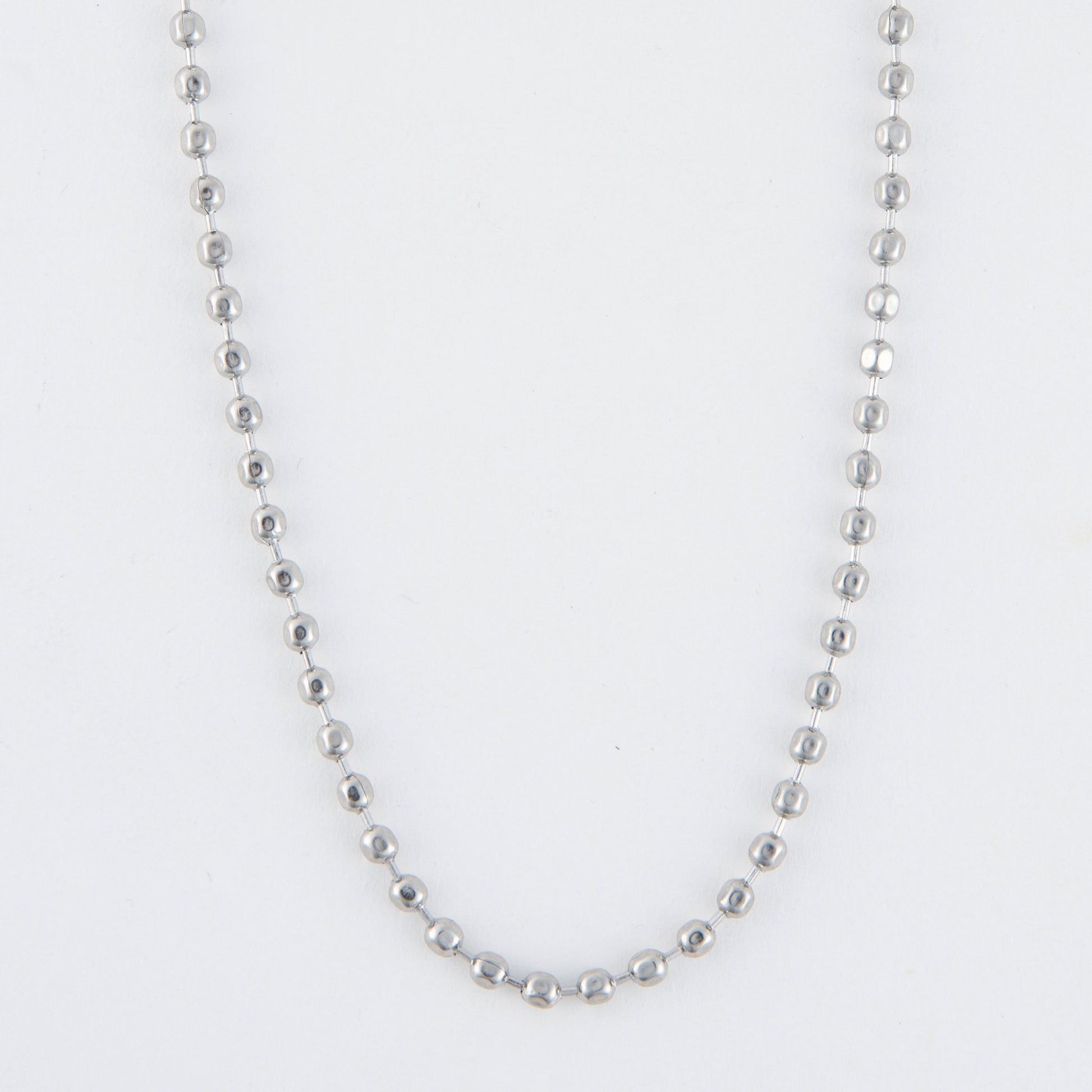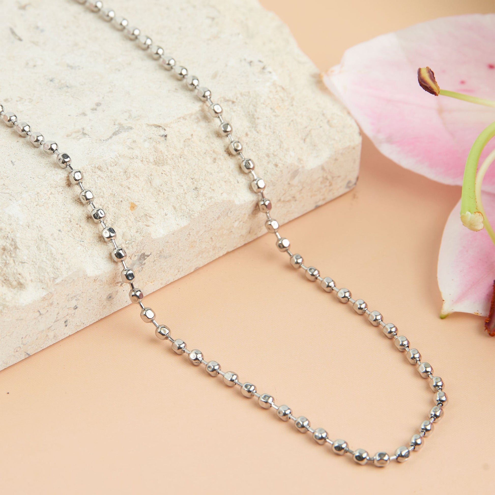 A modern take on a classic, the Narelle Waterproof Ball Chain Necklace offers a singular delicate ball chain in a classic silver. Designed to create an effortlessly chic and minimalist look, this waterproof necklace is the perfect finishing touch. Waterproof , stainless steel plated and made with a specialized PVD technique to withstand the rigors of life, from swimming and showering to sweating through your most intense workouts, all without ever losing its shine.