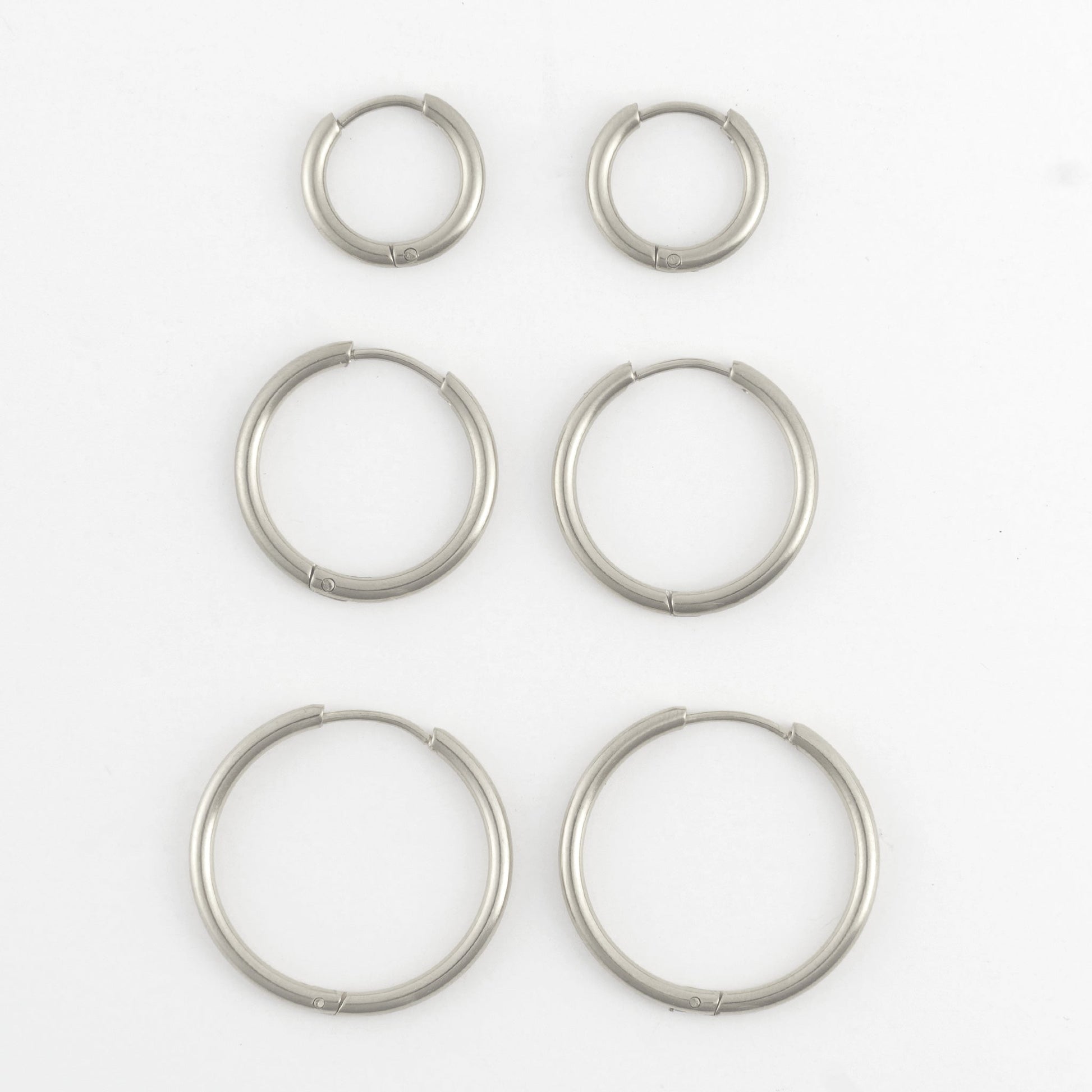 Chic and understated, the Narelle Waterproof Classic Hoop Earring Trio offers three pairs of earrings in three sizes of hoops each in a classic, goes-with-everything silver. Go big and bold, or keep it tiny and minimalistic, the options are endless with this versatile set! Waterproof , stainless steel plated and made with a specialized PVD technique to withstand the rigors of life, from swimming and showering to sweating through your most intense workouts, all without ever losing its shine.