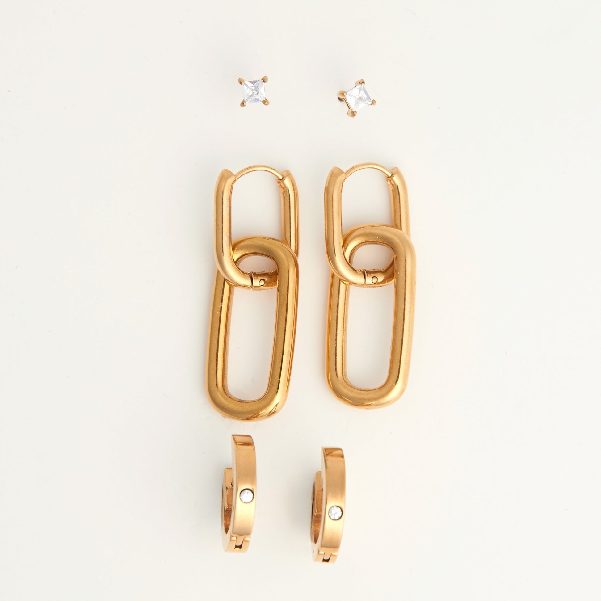 Narelle Waterproof Double Linked Hoop Earring Trio