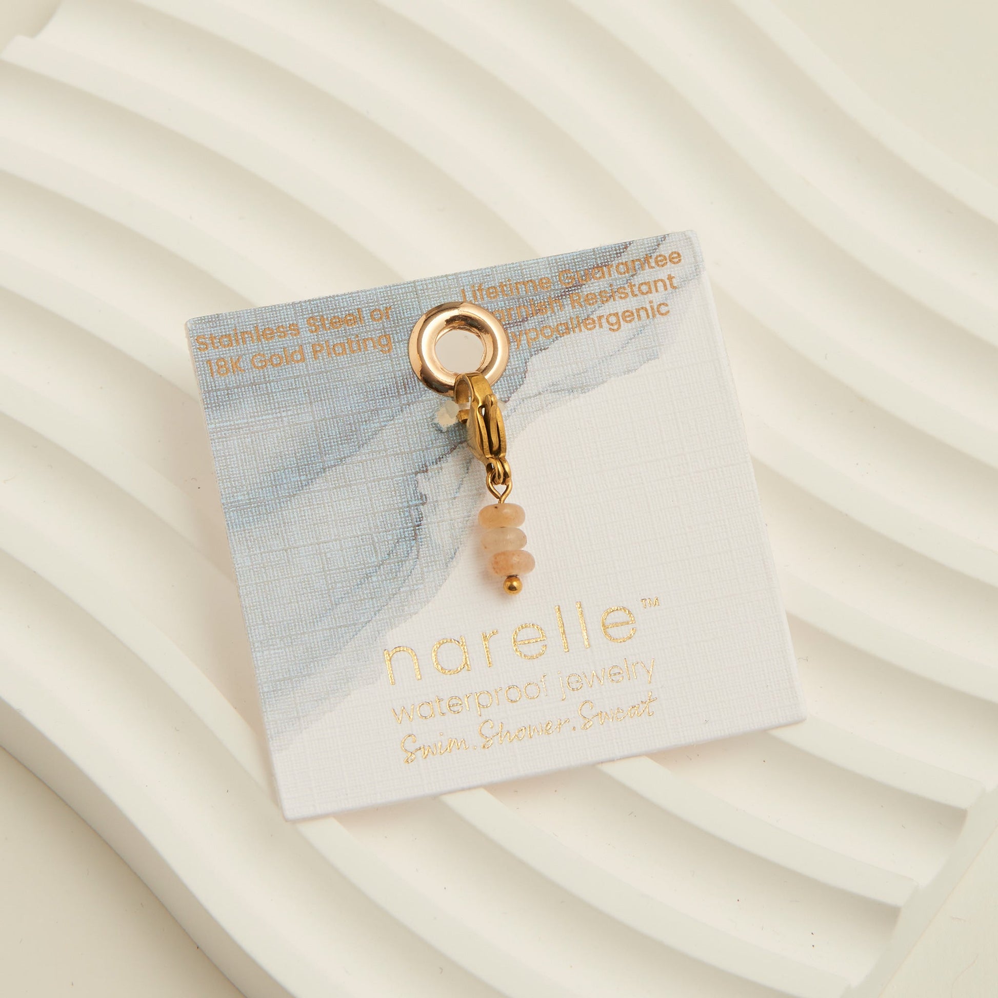 Adorable and durable, the Narelle Waterproof Drop Bead Charm features an 18k gold plated clasp with lovely stack of three earth tone beads. Attach it to your favorite Narelle Waterproof bracelet or necklace to easily create a look as unique as you! Hypoallergenic, tarnish resistant with a lifetime color guarantee.