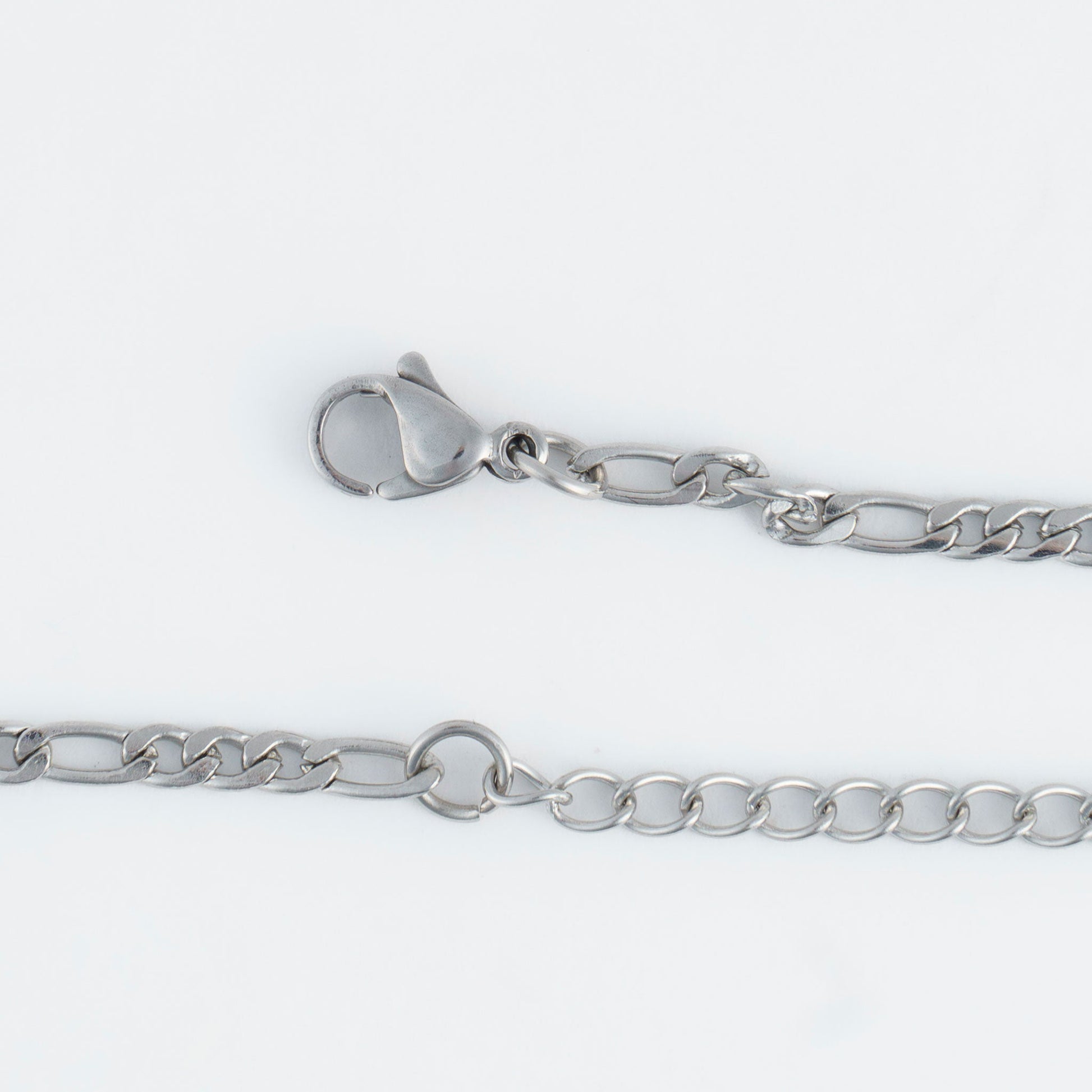 A modern take on a classic, the Narelle Waterproof Figaro Chain Necklace offers a singular delicate chain in a classic silver. Designed to create an effortlessly chic and minimalist look, this sweet waterproof necklace is the perfect finishing touch. Waterproof , stainless steel plated and made with a specialized PVD technique to withstand the rigors of life, from swimming and showering to sweating through your most intense workouts, all without ever losing its shine.