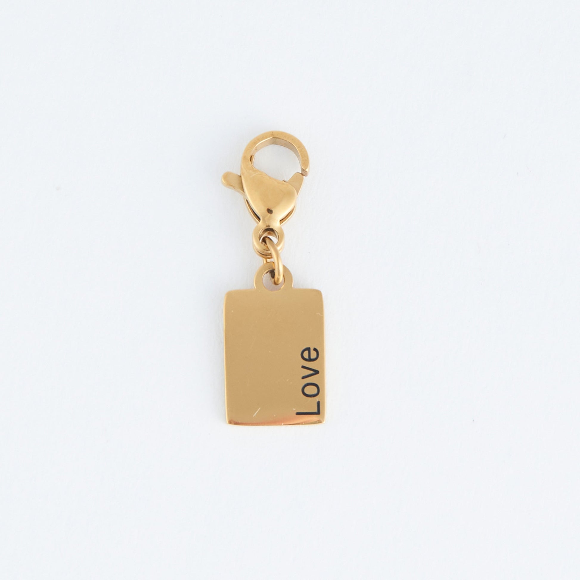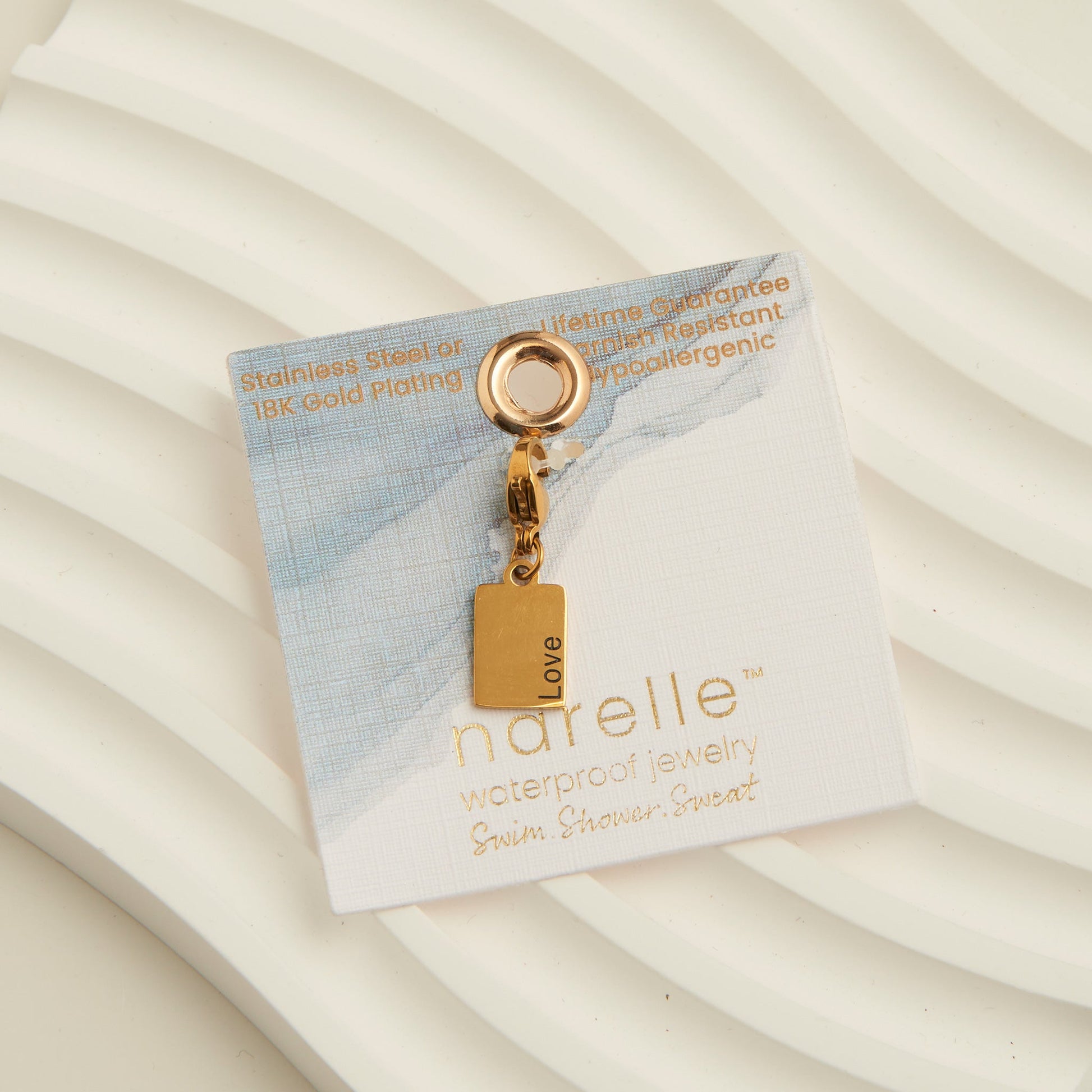 Adorable and durable, the Narelle Waterproof Love Tag Charm features a 18k gold plated dainty tag etched with the word 'Love'. Attach it to your favorite Narelle Waterproof bracelet or necklace to easily create a look as unique as you! Hypoallergenic, tarnish resistant with a lifetime color guarantee