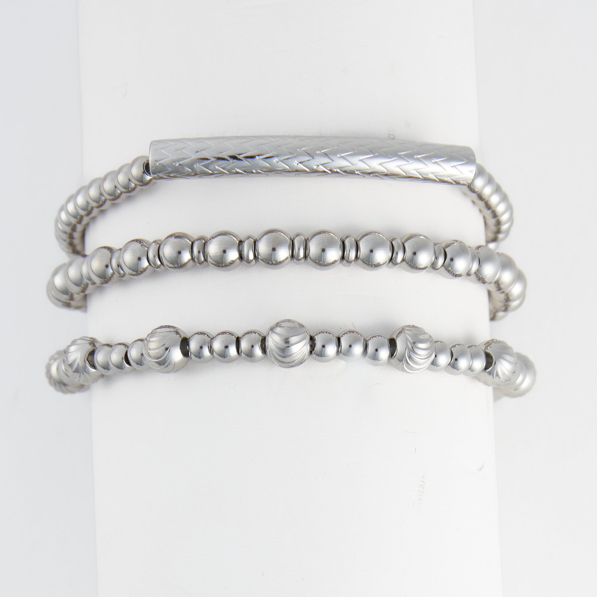 Love a layered look! Featuring three unique strands of 18k gold plated ball chains and cute textured bar detailing, the Narelle Waterproof Multi Stretch Bracelet Set is perfect for every day. Hypoallergenic, tarnish resistant with a lifetime color guarantee