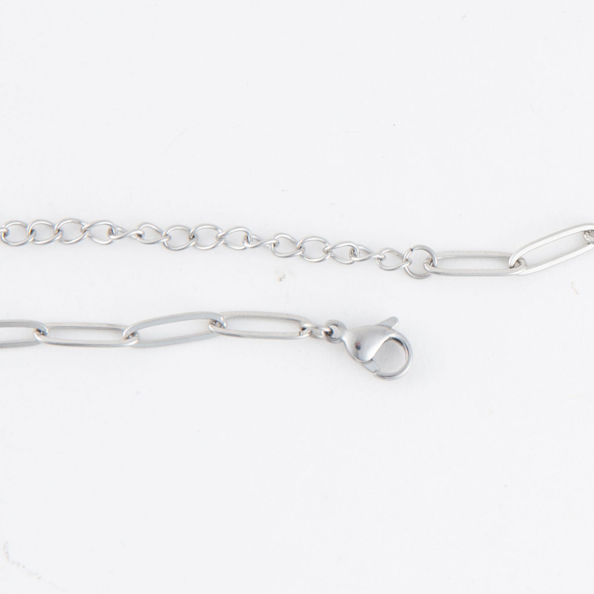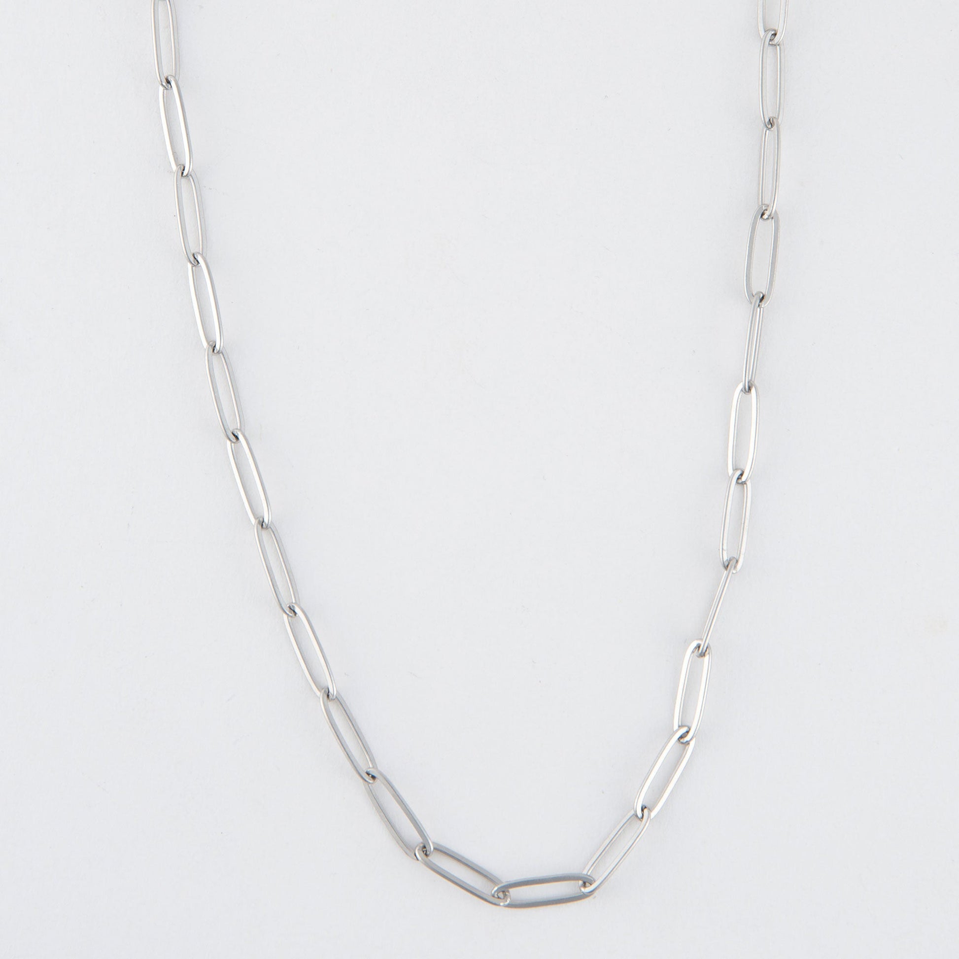 A modern take on a classic, the Narelle Waterproof Paperclip Chain Necklace offers a funky paperclip chain in a classic silver. Designed to create an effortlessly chic and minimalist look, this waterproof necklace is the perfect finishing touch. Waterproof , stainless steel plated and made with a specialized PVD technique to withstand the rigors of life, from swimming and showering to sweating through your most intense workouts, all without ever losing its shine.