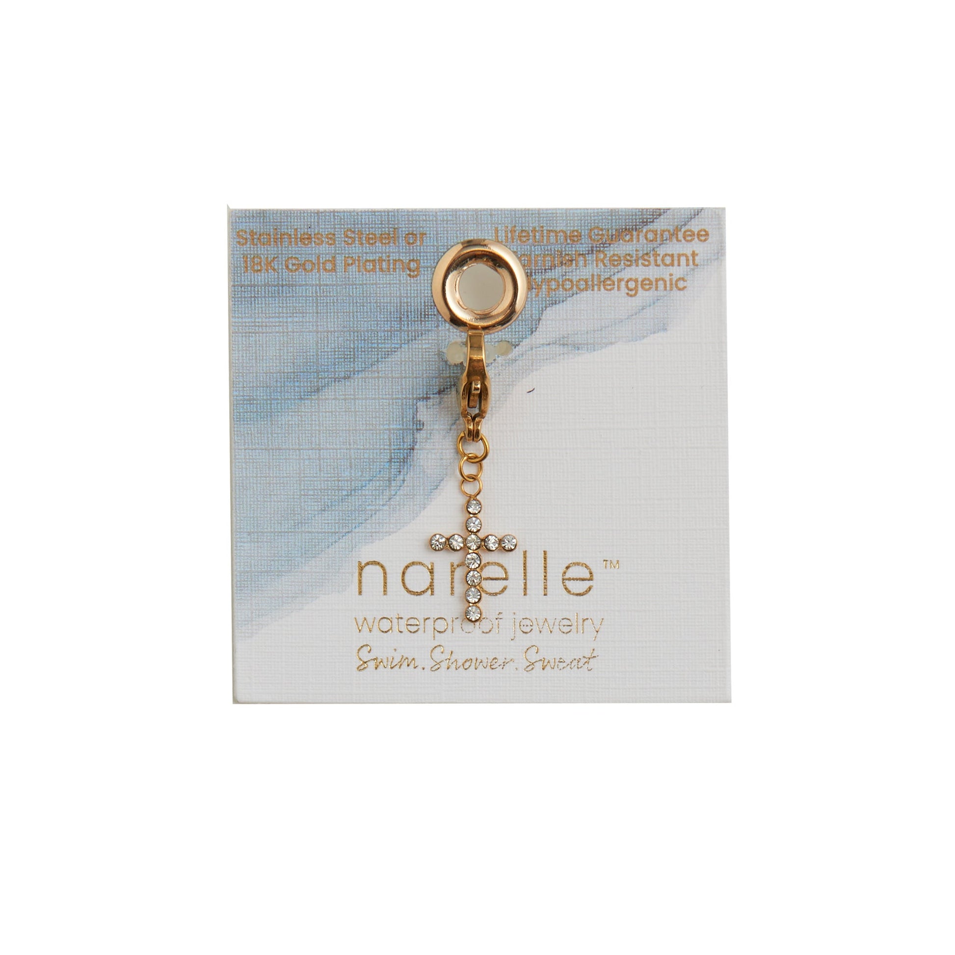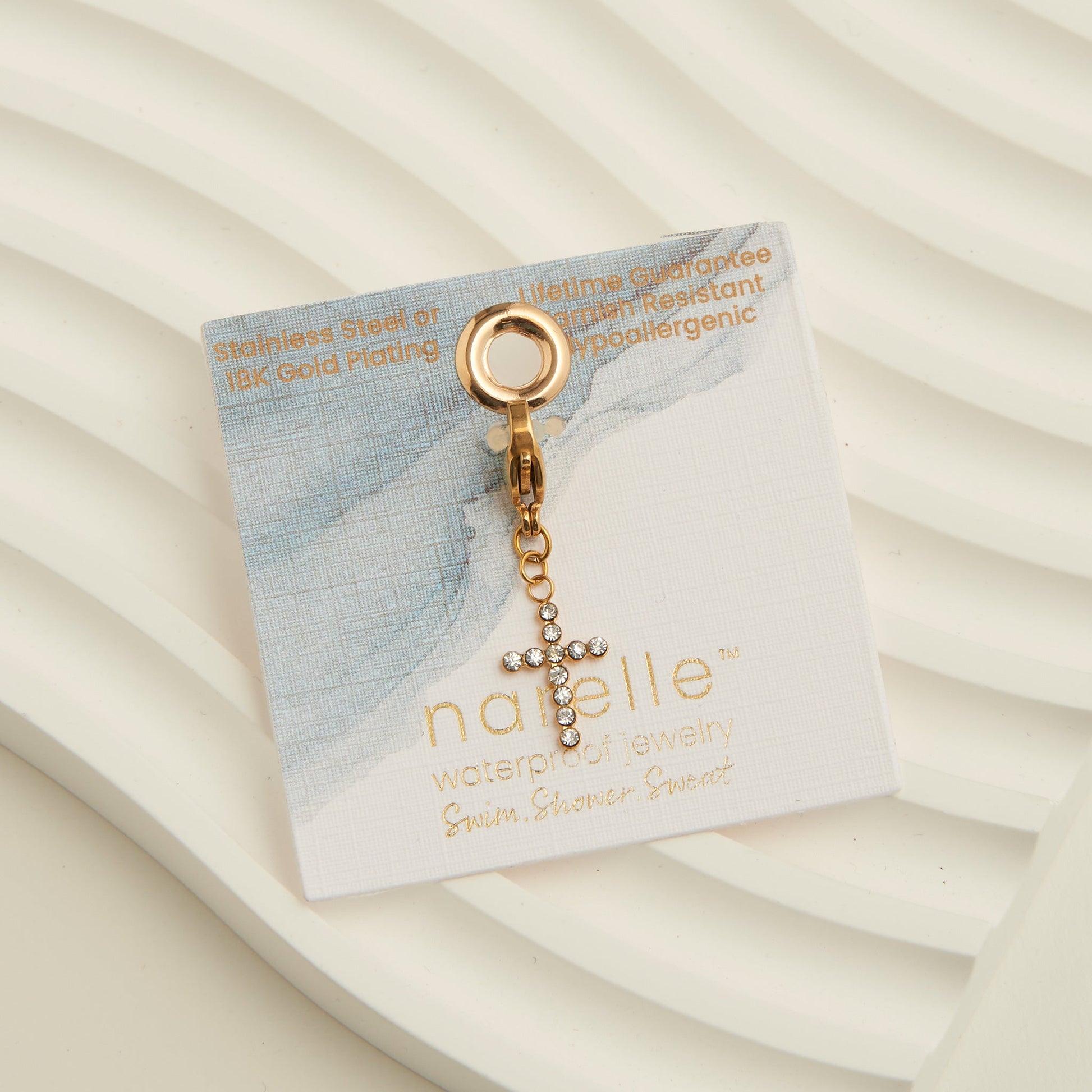 Adorable and durable, the Narelle Waterproof Pave Cross Charm features an 18k gold plated clasp and sweet pave studded cross charm. Attach it to your favorite Narelle Waterproof bracelet or necklace to easily create a look as unique as you! Hypoallergenic, tarnish resistant with a lifetime color guarantee.