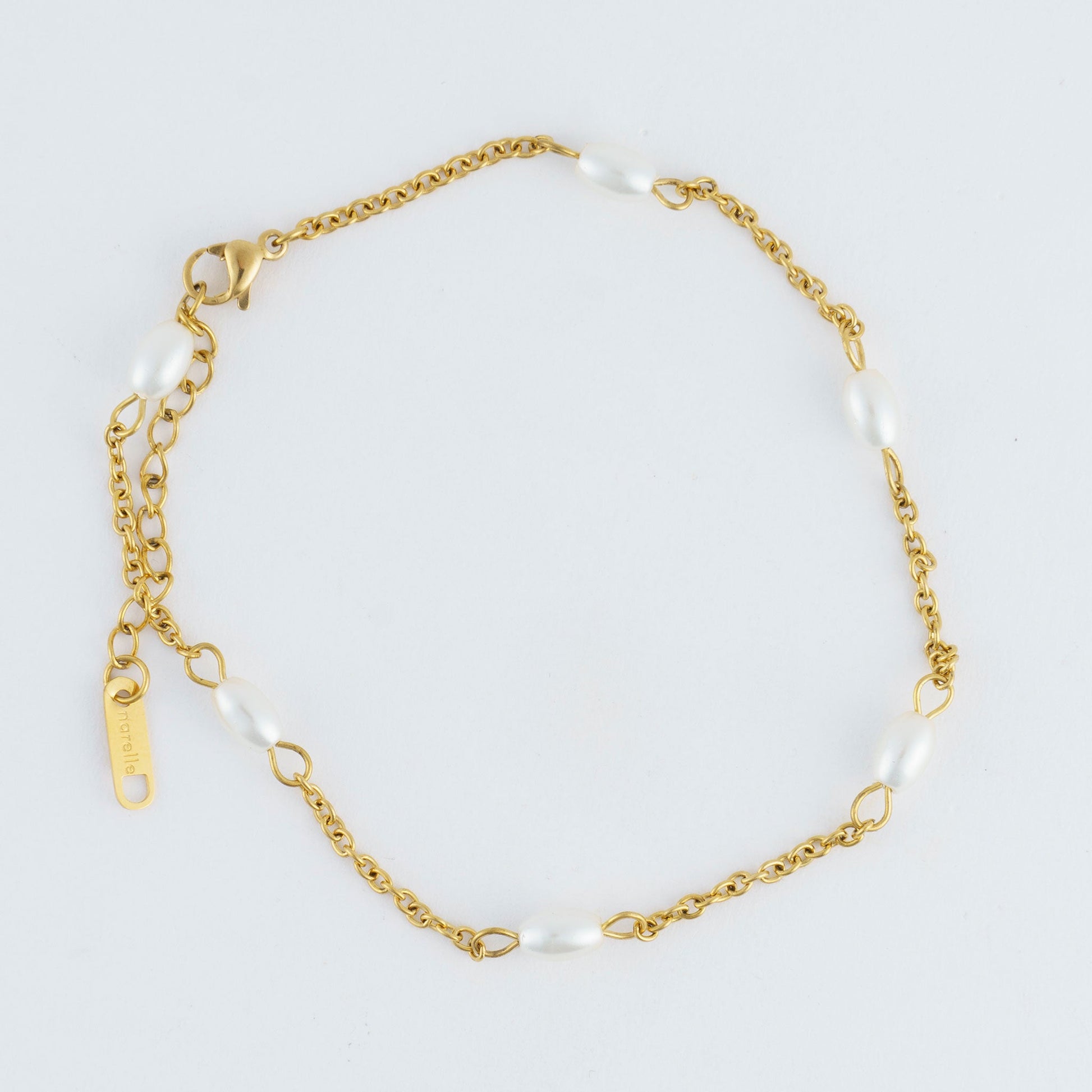 A modern take on a classic, the Narelle Waterproof Pearl Anklet a singular delicate chain in a classic gold with pearl accents. Designed to help you achieve an effortlessly minimalist look, this sweet anklet is the perfect finishing touch to any summer outfit. Waterproof , 18K gold plated and made with a specialized PVD technique to withstand the rigors of life, from swimming and showering to sweating through your most intense workouts, all without ever losing its shine.