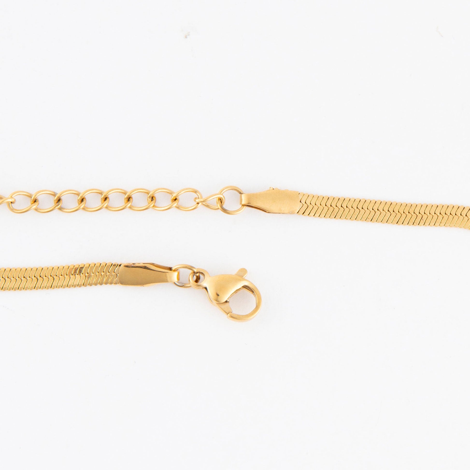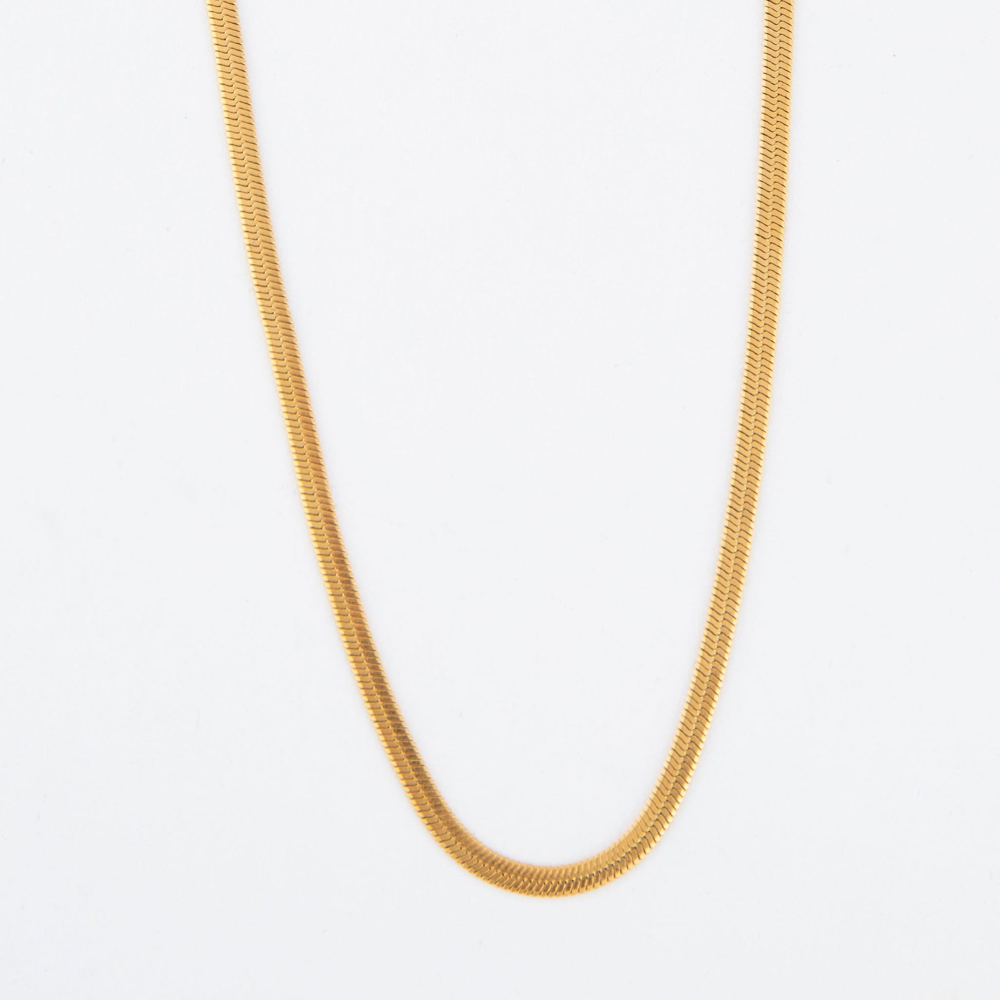 A modern take on a classic, the Narelle Waterproof Snake Chain Necklace offers a sleek snake chain in a classic gold. Designed to create an effortlessly chic and minimalist look, this waterproof necklace is the perfect finishing touch. Waterproof , 18K gold plated and made with a specialized PVD technique to withstand the rigors of life, from swimming and showering to sweating through your most intense workouts, all without ever losing its shine.