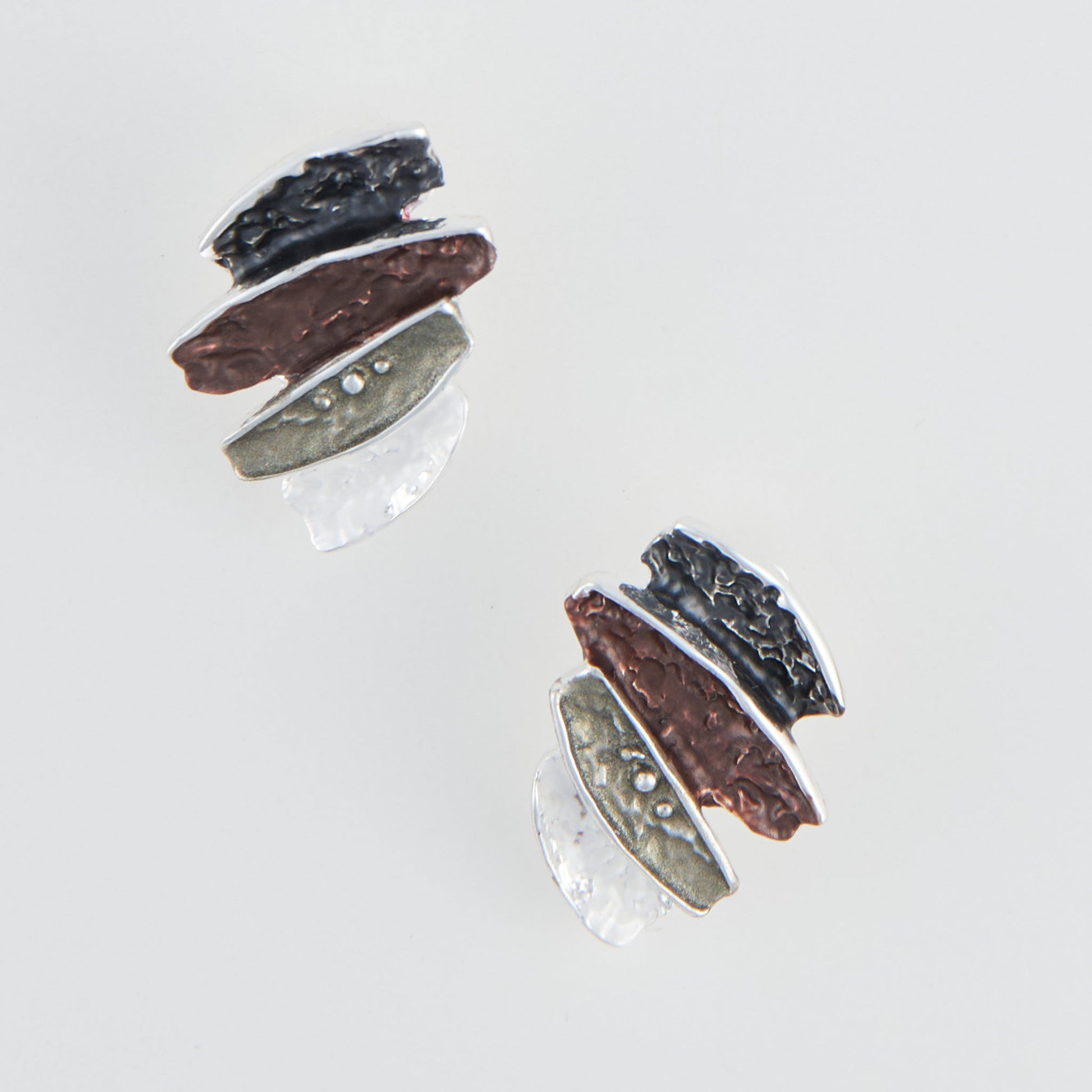 Create an effortlessly whimsical look with the Penelope Enamel Bar Earrings. Featuring neutral-toned textured enamel diagonal bars, these post earrings bring interest to any look.