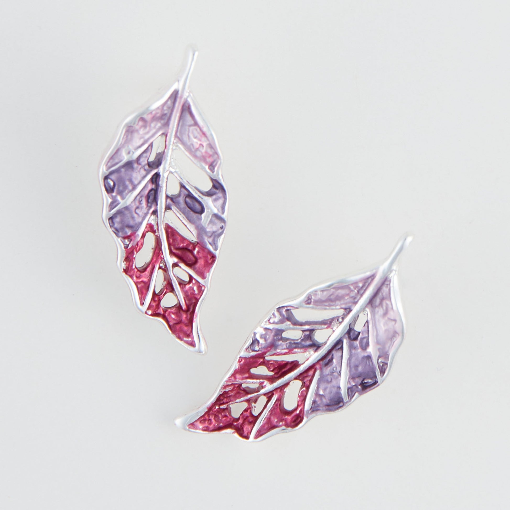 Create an effortlessly whimsical look with the Penelope Enamel Cut Out Leaf Earrings. Featuring cute leaf-shaped design with bring pink and purple textured enamel, these post earrings bring interest to any look.