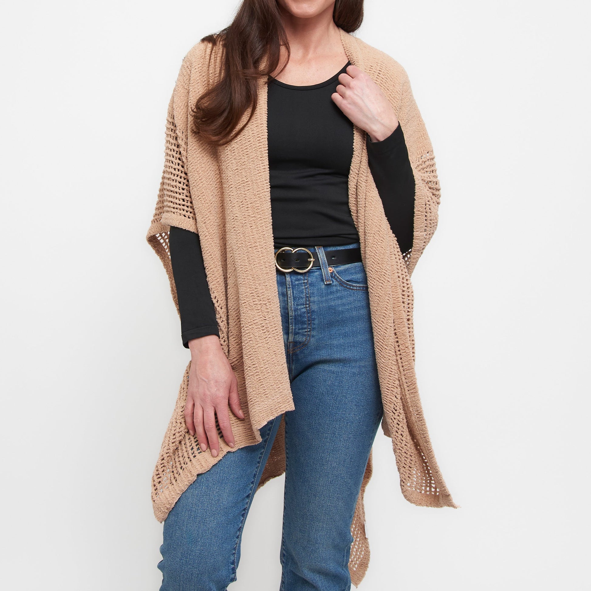 Cozy and cute! The Presley Open Sweater Knit Wrap features an open design and perfect draping. Easy to style with your favorite pair of jeans or leggings, this wrap is an absolute must-have for those colder months