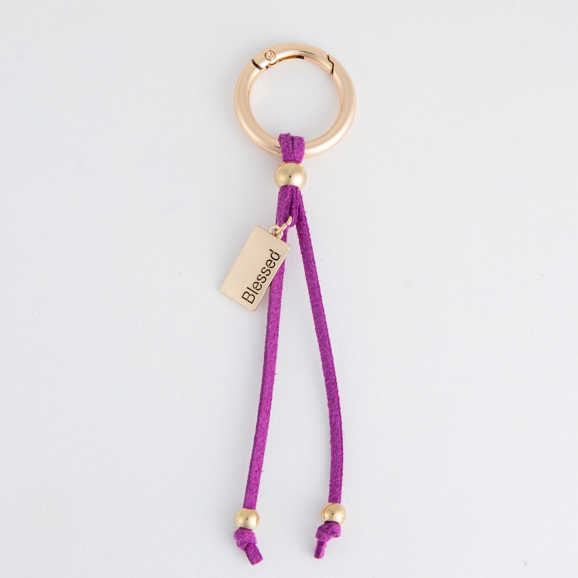 Never lose your keys again with the Quinn Blessed Charm Keychain. Featuring a silver tab with the word 'blessed' etched into it, this carabiner style keychain effortlessly brings functionality and cute together.
