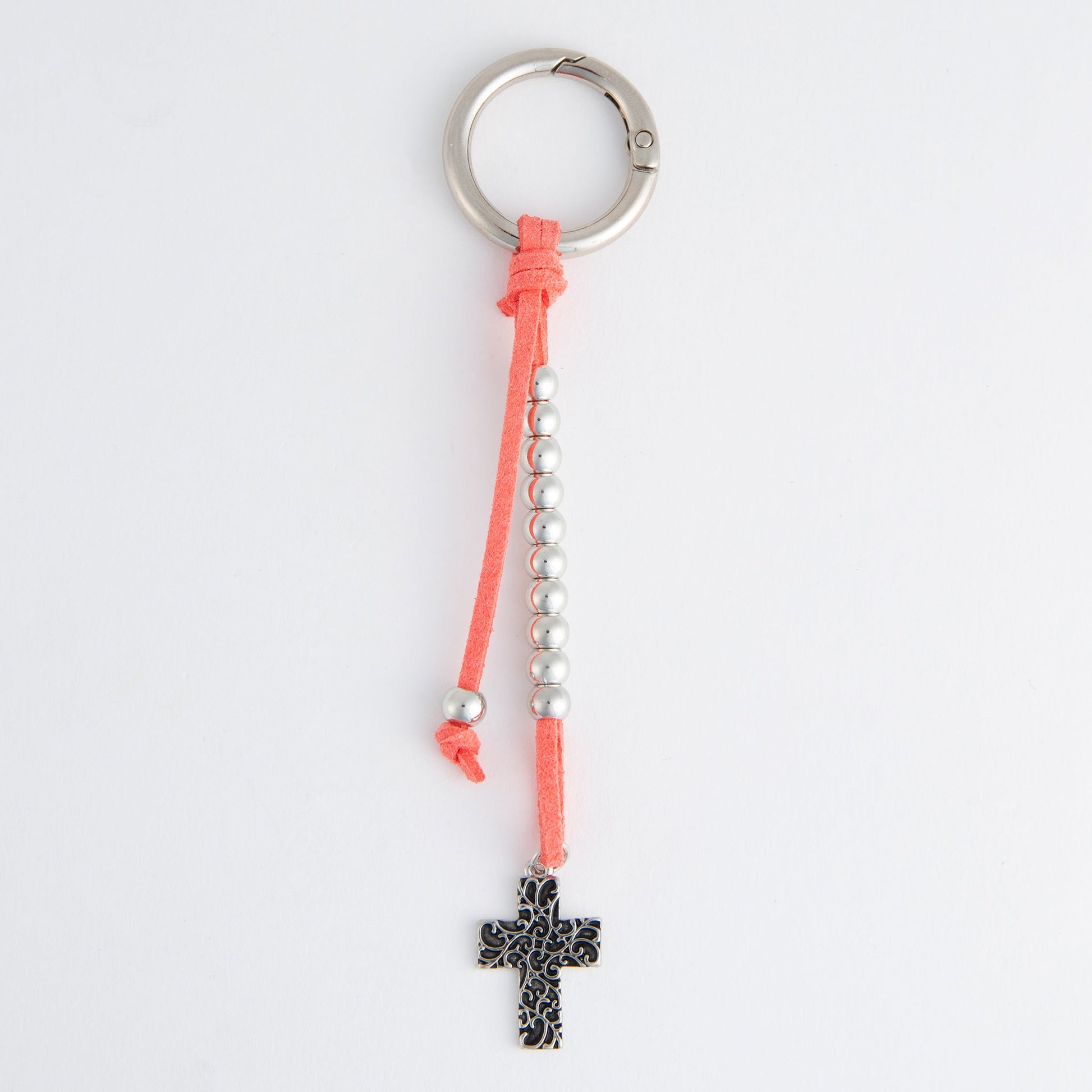 Never lose your keys again with the Quinn Cross Keychain. Featuring silver beads and cross charm, this carabiner style keychain effortlessly brings functionality and cute together.