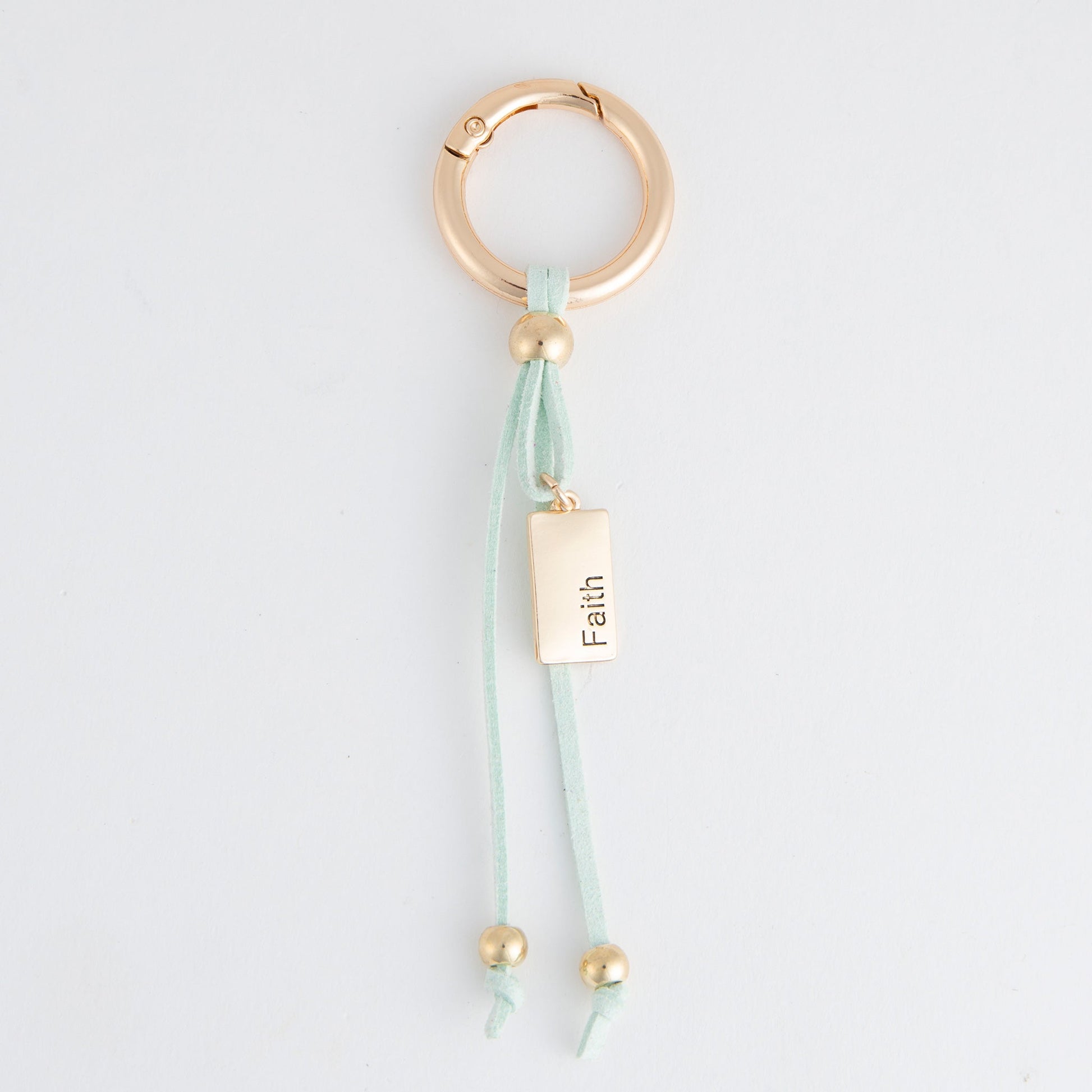 Never lose your keys again with the Quinn Faith Charm Keychain. Featuring a silver tab with the word 'faith' etched into it, this carabiner style keychain effortlessly brings functionality and cute together.