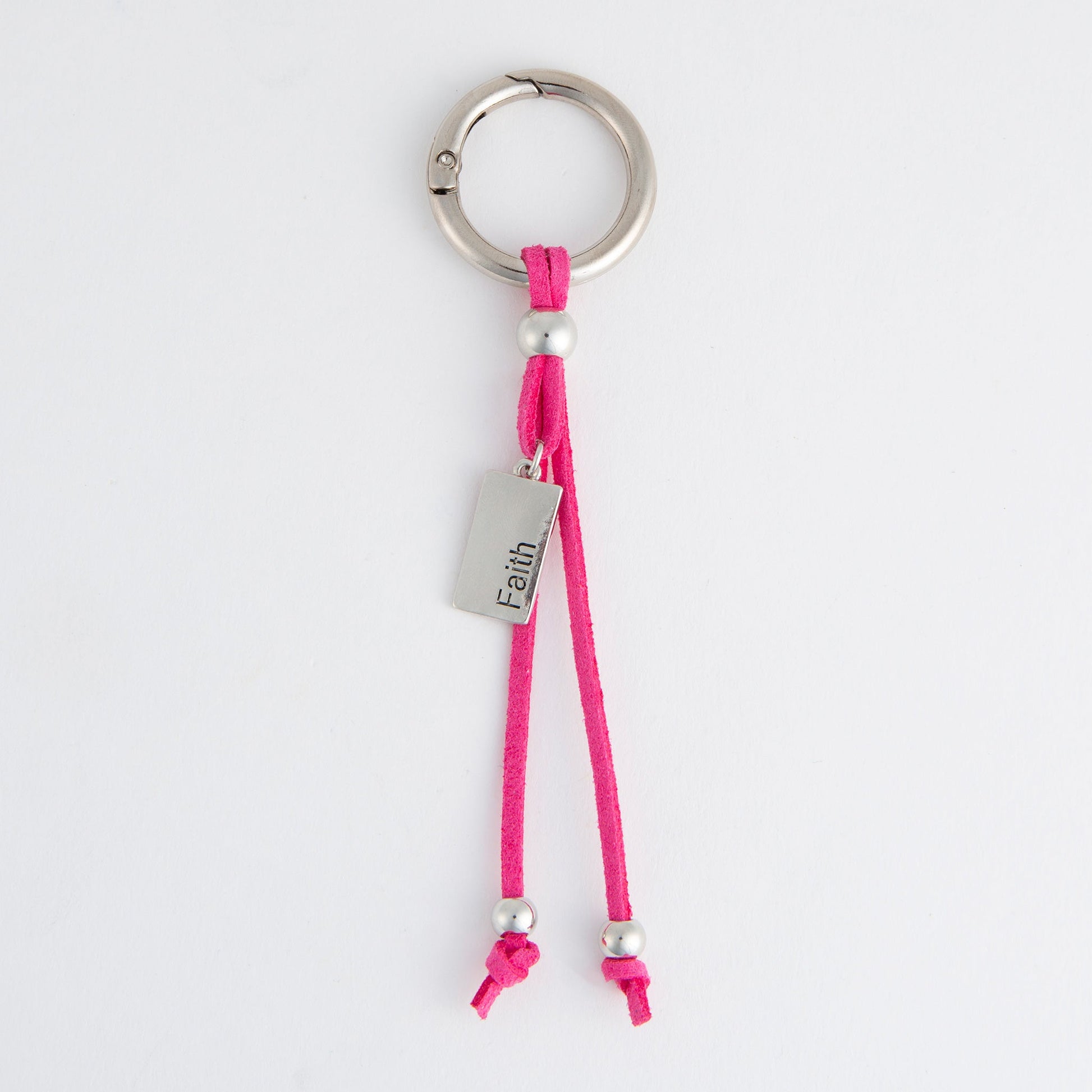 Never lose your keys again with the Quinn Faith Charm Keychain. Featuring a silver tab with the word 'faith' etched into it, this carabiner style keychain effortlessly brings functionality and cute together.