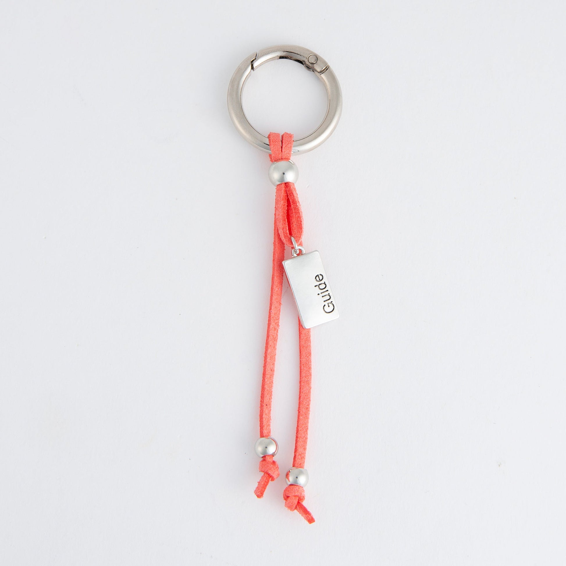 Never lose your keys again with the Quinn Guide Charm Keychain. Featuring a silver tab with the word 'guide' etched into it, this carabiner style keychain effortlessly brings functionality and cute together.