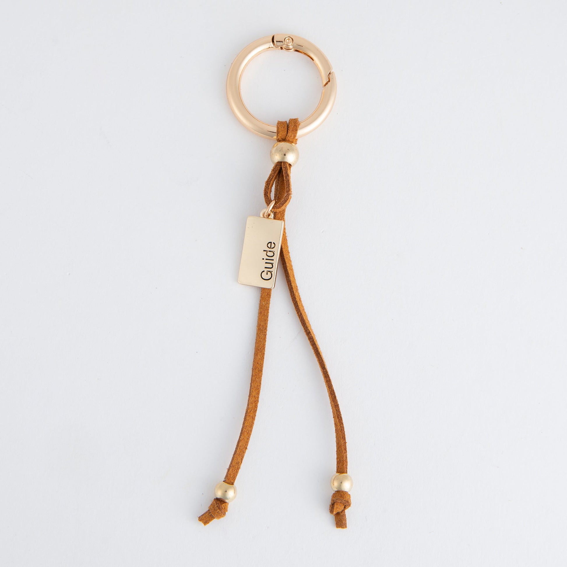 Never lose your keys again with the Quinn Guide Charm Keychain. Featuring a silver tab with the word 'guide' etched into it, this carabiner style keychain effortlessly brings functionality and cute together.