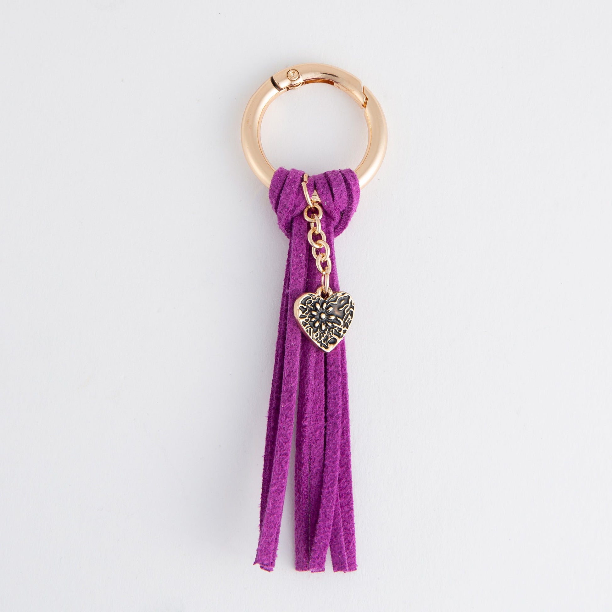 Stay organized in style with the Quinn Heart Charm Tassel Keychain. Featuring fun tassels and sweet engraved heart charm, this keychain stands out in both style and practicality.