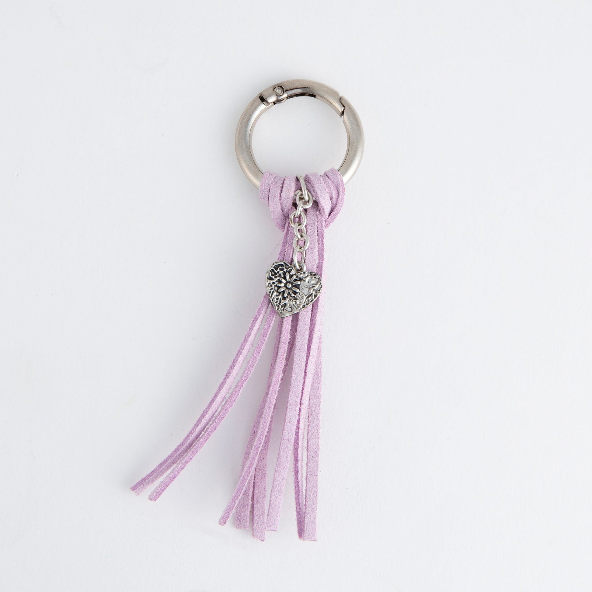 Stay organized in style with the Quinn Heart Charm Tassel Keychain. Featuring fun tassels and sweet engraved heart charm, this keychain stands out in both style and practicality.