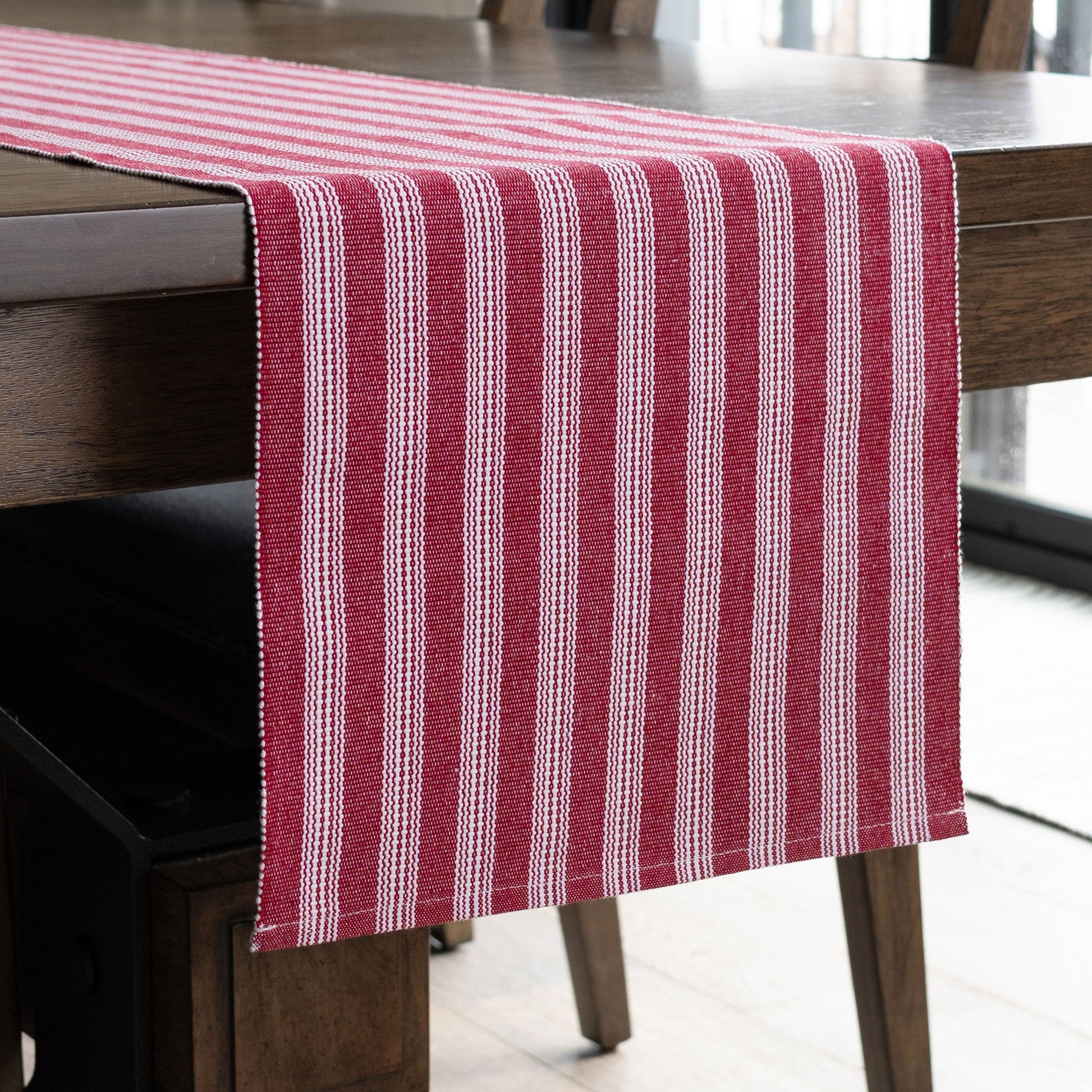 Add some interest to your dining table with the Red & White Stripe Woven Table Runner. Featuring a rich red and white stripe design in a 100% woven cotton, this table runner adds color and charm to any dining room.