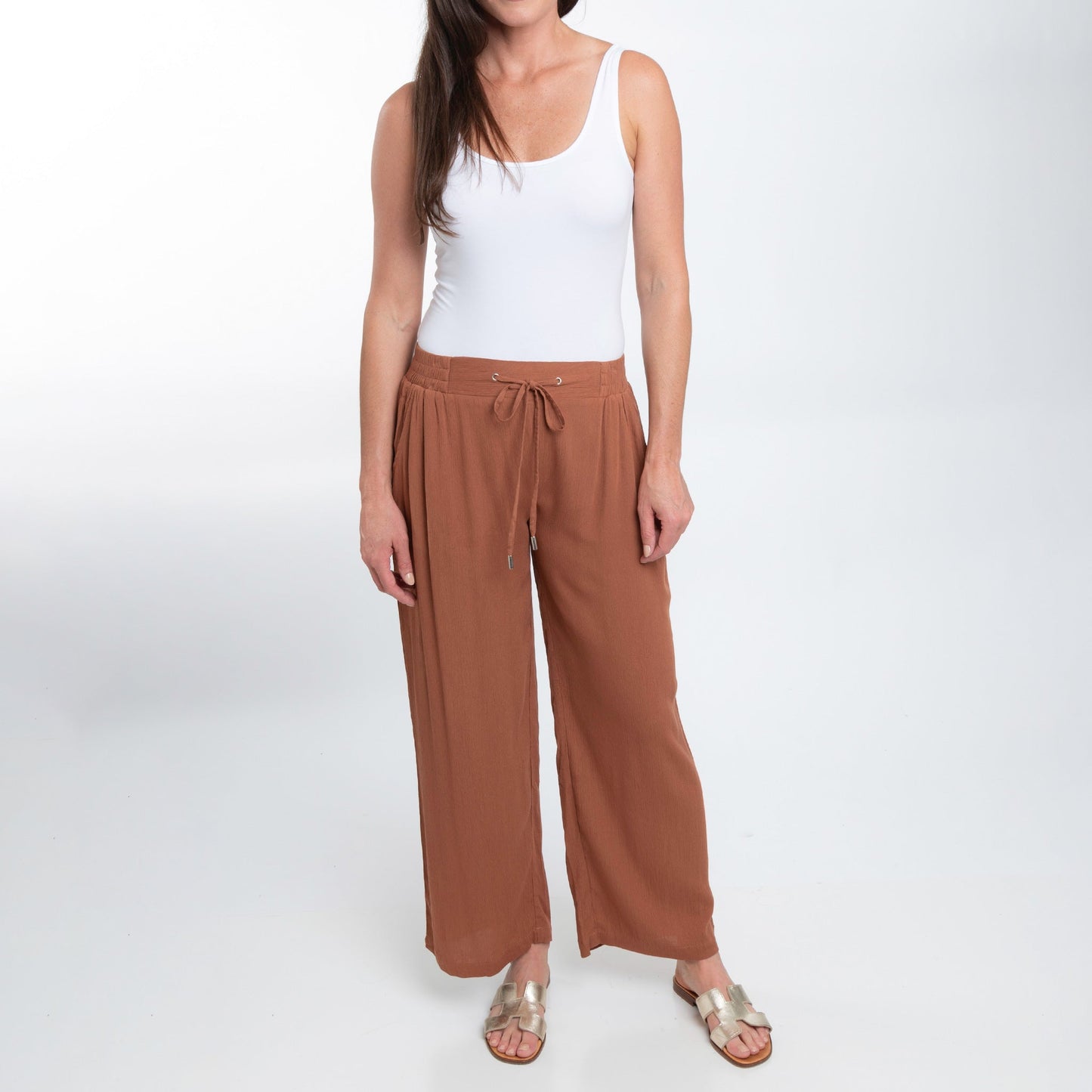 Perfect for those warmer days! The Riva Wide Leg Pants offer effortless style with their lightweight material, wide leg design, and adjustable elastic waistband. Pair with a white tank and your favorite sandals for a quick and cute look!