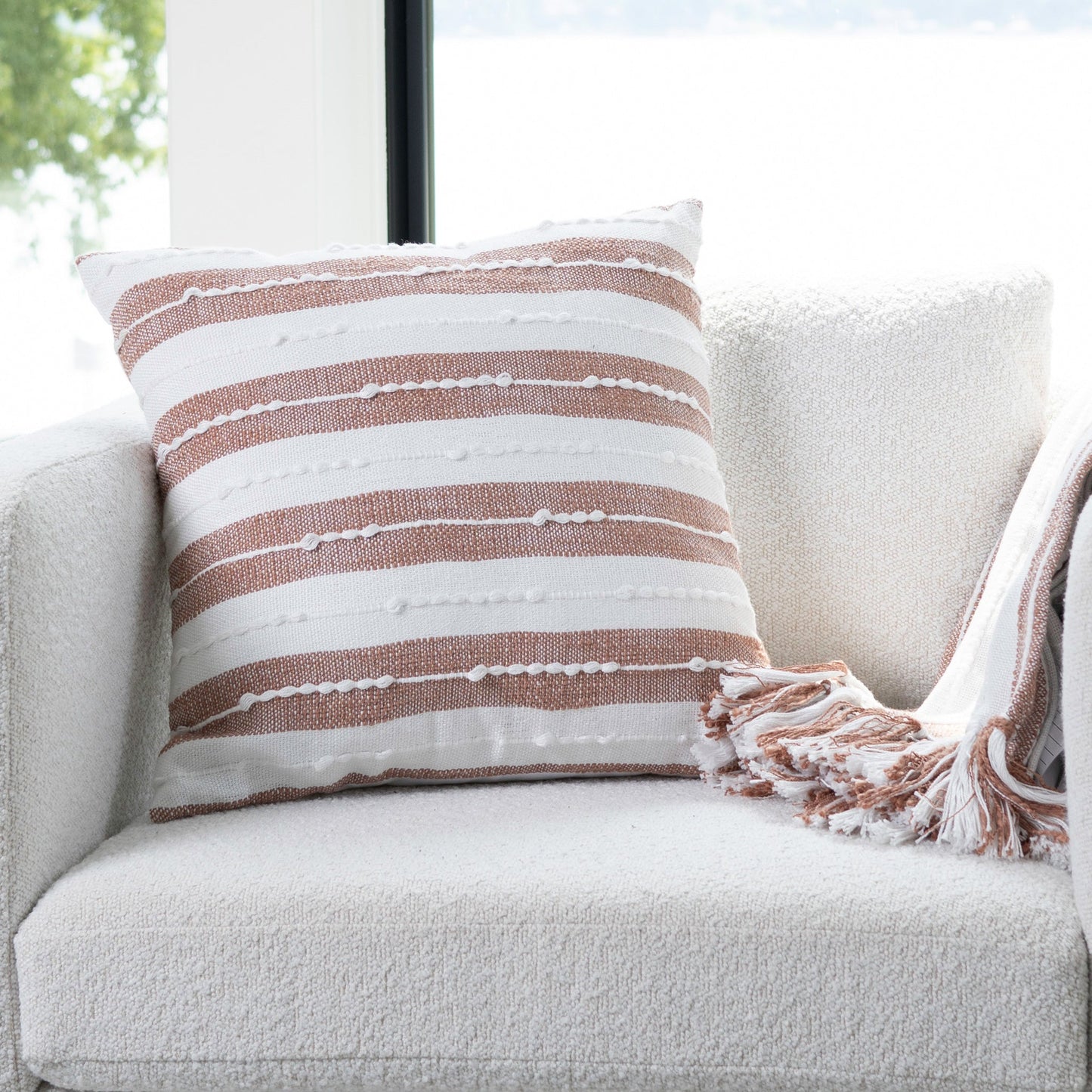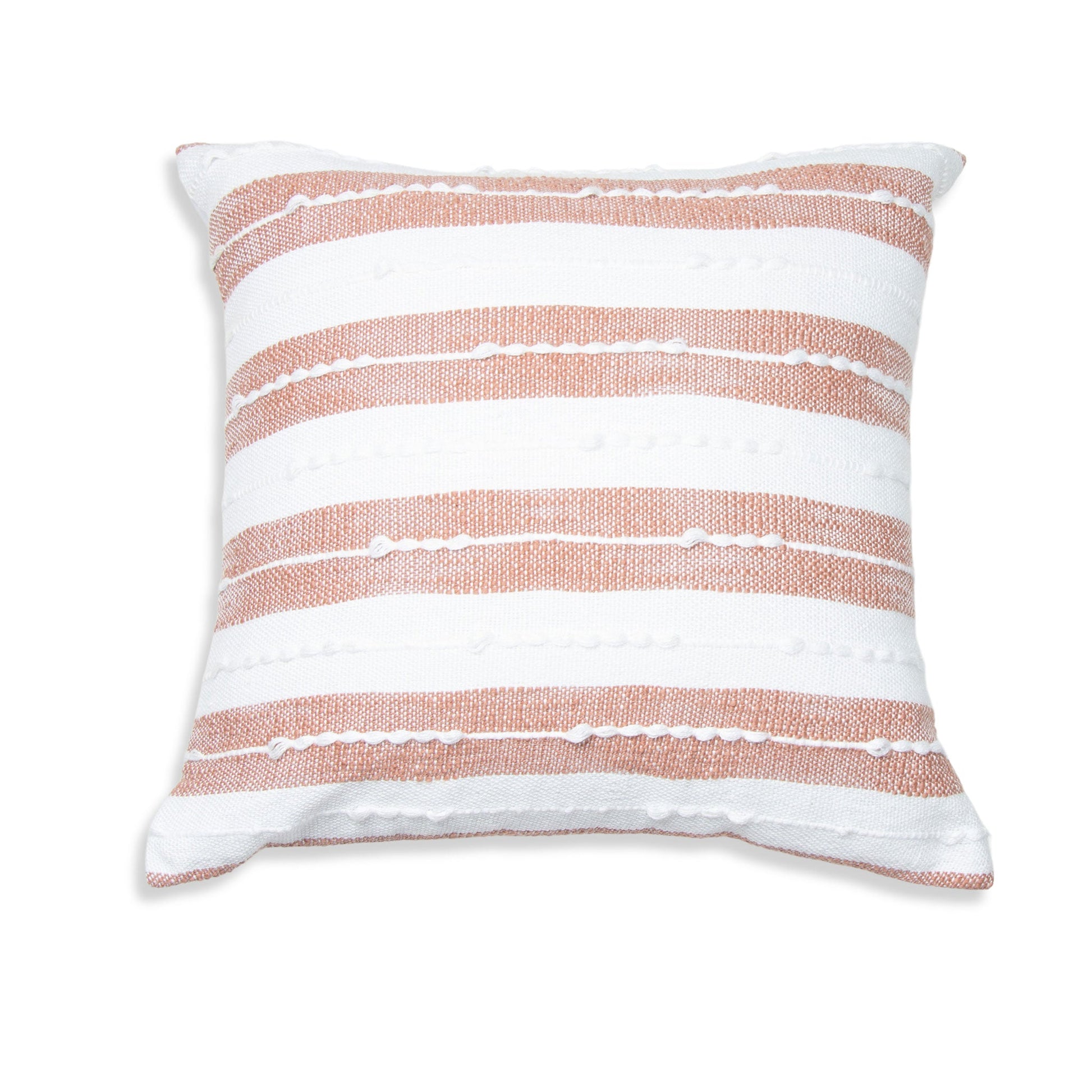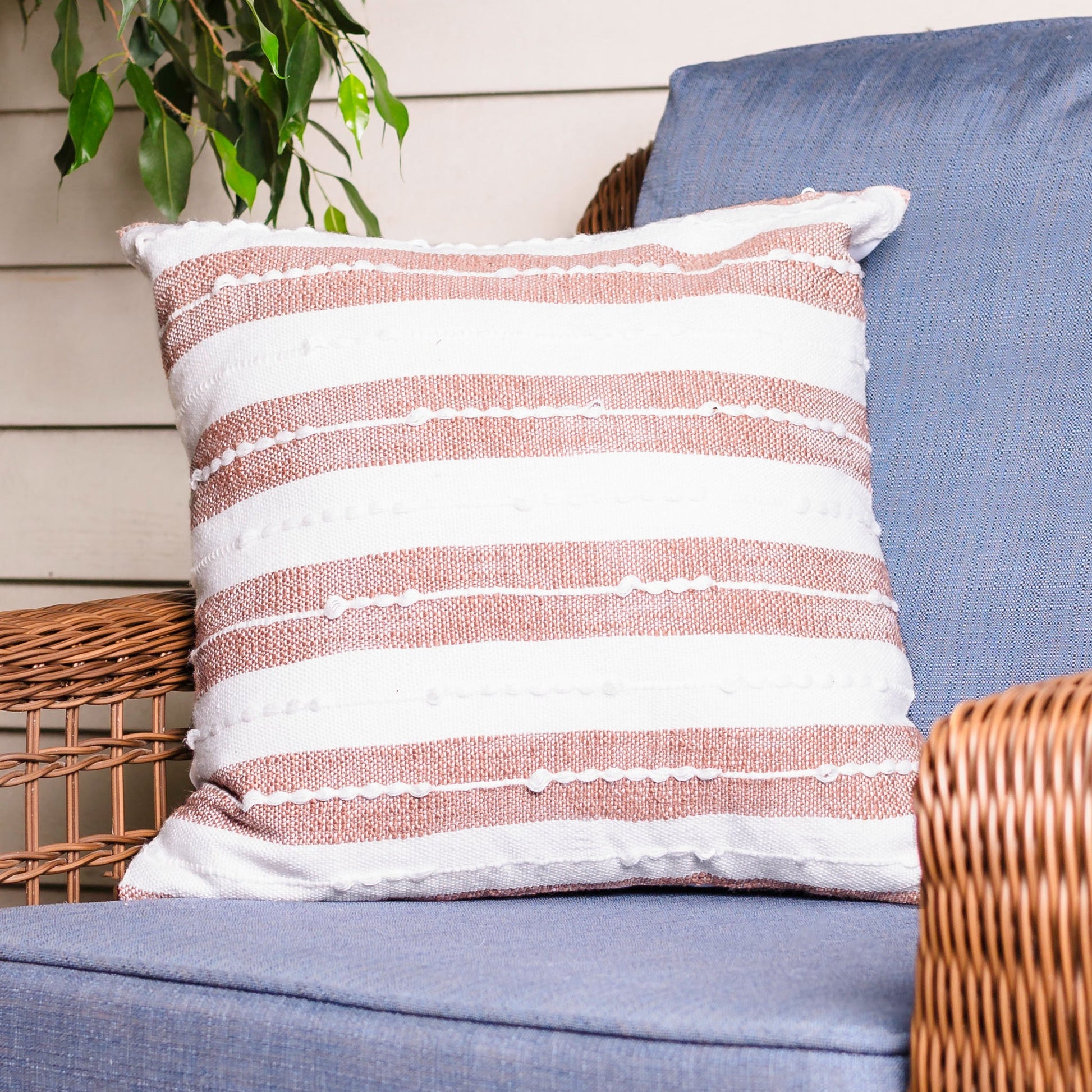 Add a bit of interest to your outdoor living space with the Romy Handwoven Indoor/Outdoor 18x18 Pillow. Featuring a cute textured clay stripe design, this handwoven pillow is made from recycled plastic bottles and is UV protected, ensuring a longer outdoor life. Its zipper opening makes it a breeze to clean. If you've been looking for the perfect outdoor throw pillow, this is it.