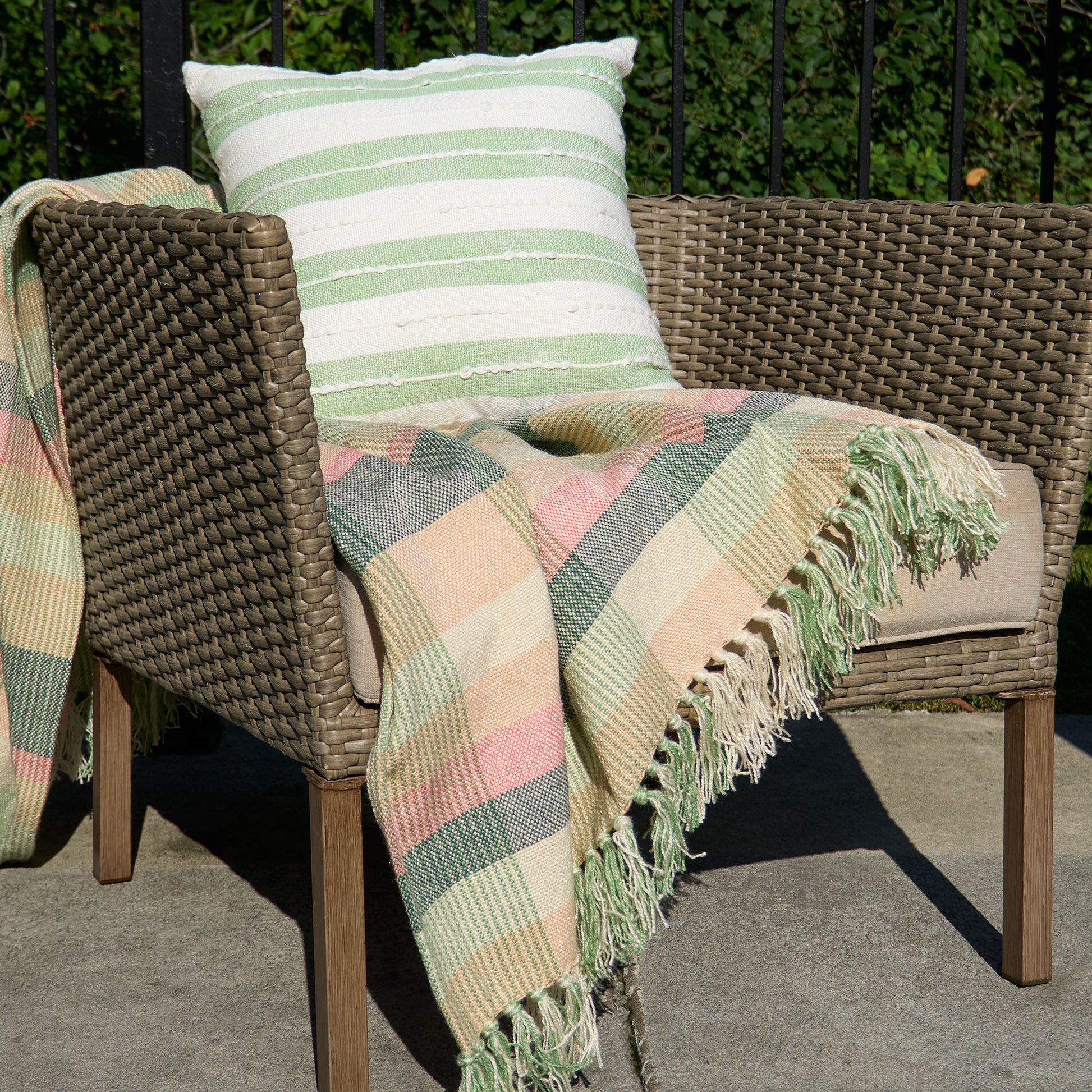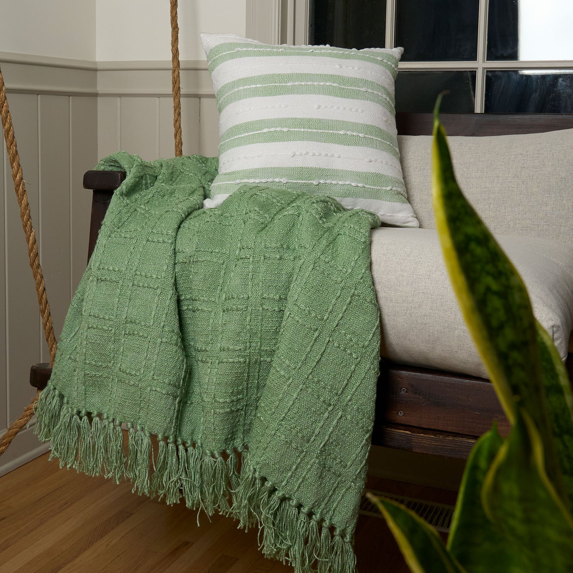 Add a bit of interest to your outdoor living space with the Romy Handwoven Indoor/Outdoor 18x18 Pillow. Featuring a cute textured green stripe design, this handwoven pillow is made from recycled plastic bottles and is UV protected, ensuring a longer outdoor life. Its zipper opening makes it a breeze to clean. If you've been looking for the perfect outdoor throw pillow, this is it.