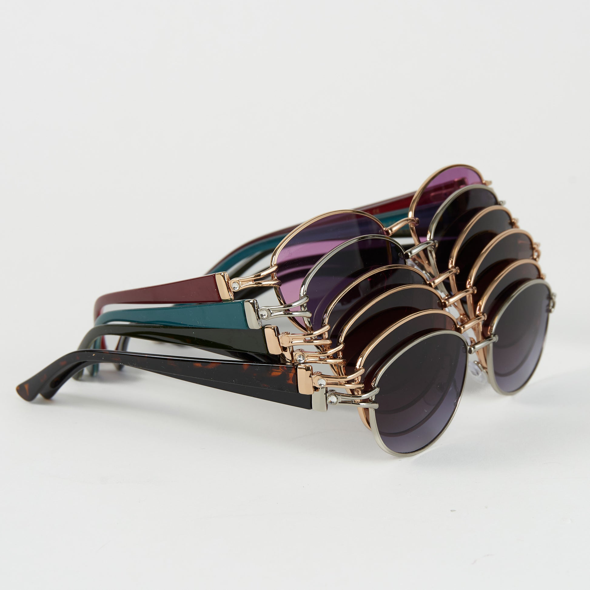 Stock up on everyday style with our round rhinestone accent frame sunglasses assortment featuring 5 pairs in a variety of best-selling colors. Each pair offers a trendy round frame silhouette with rhinestone accents, UV protection and modern flair—perfect for beach days, festivals, or daily wear.